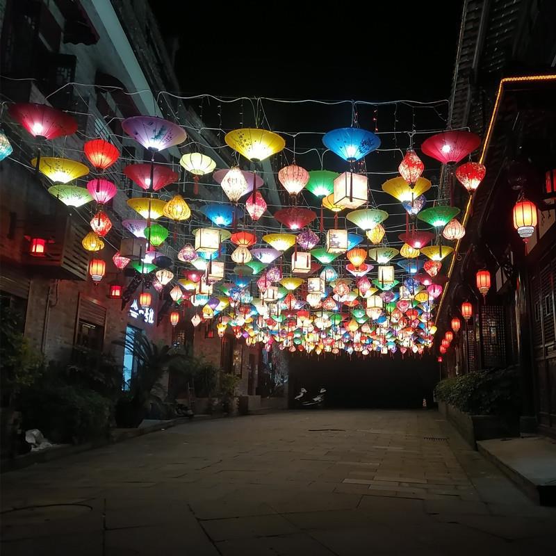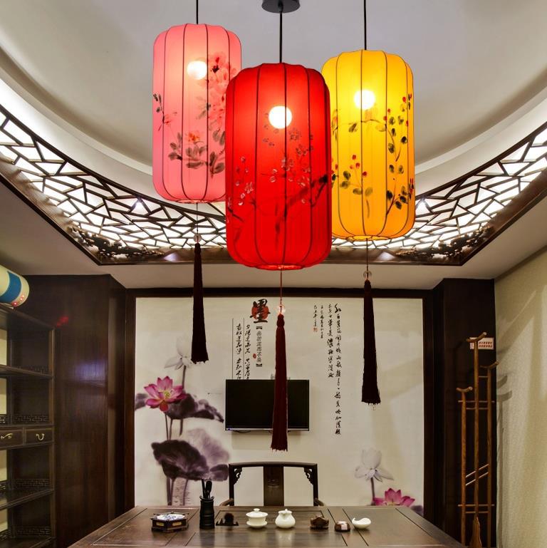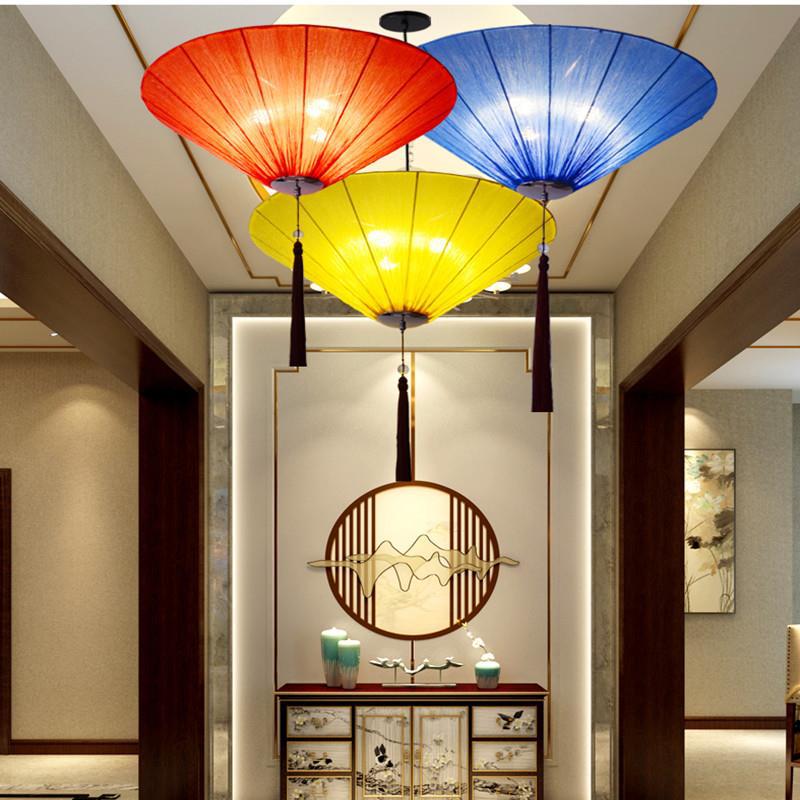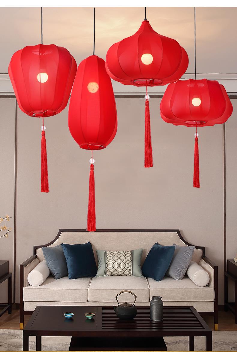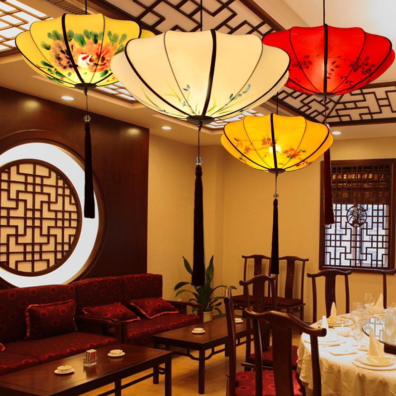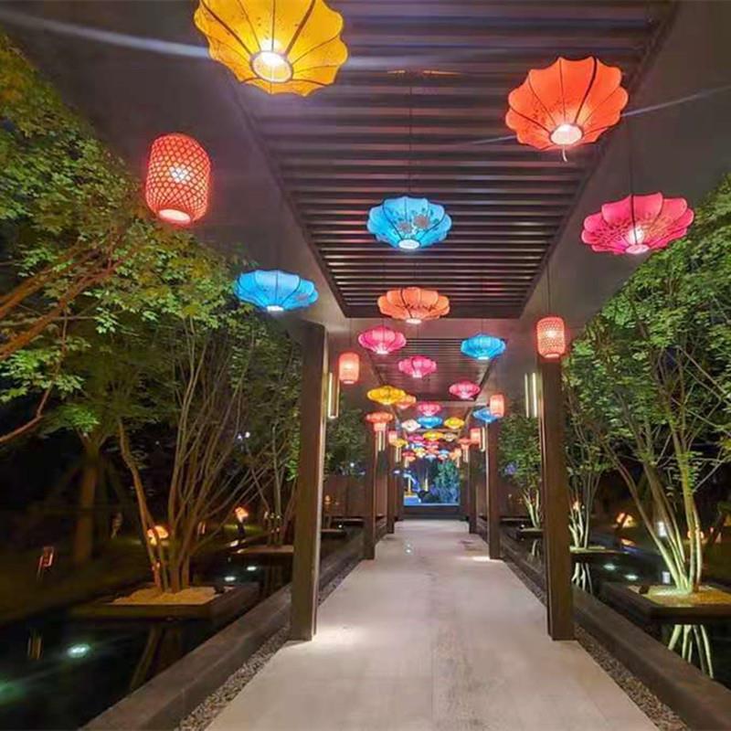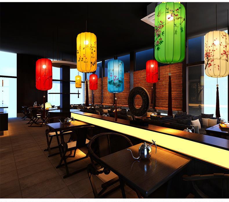 外贸专供五一新中式吊灯布艺手绘灯笼中国风商场店铺走廊过道灯饰