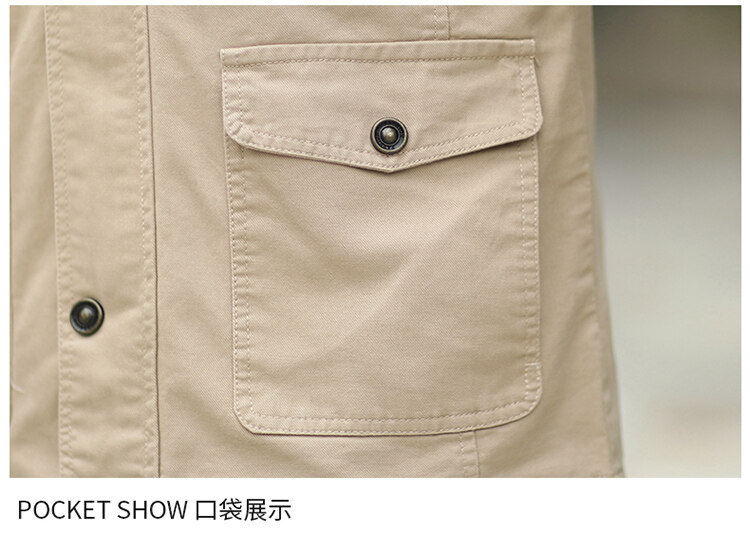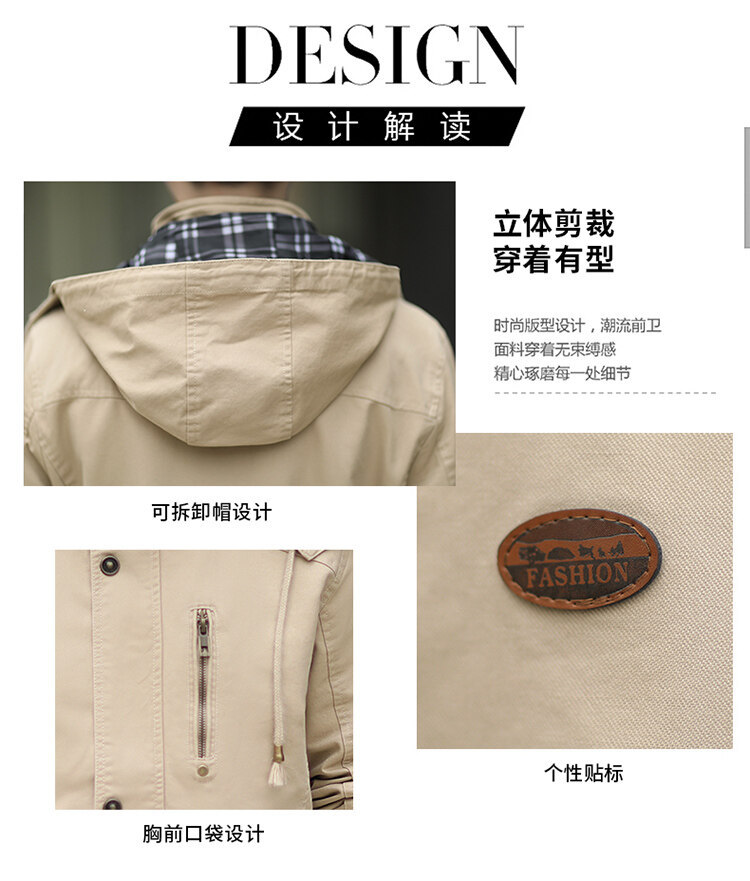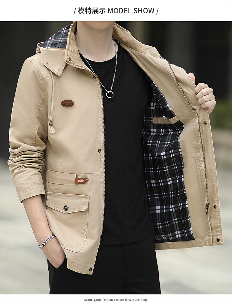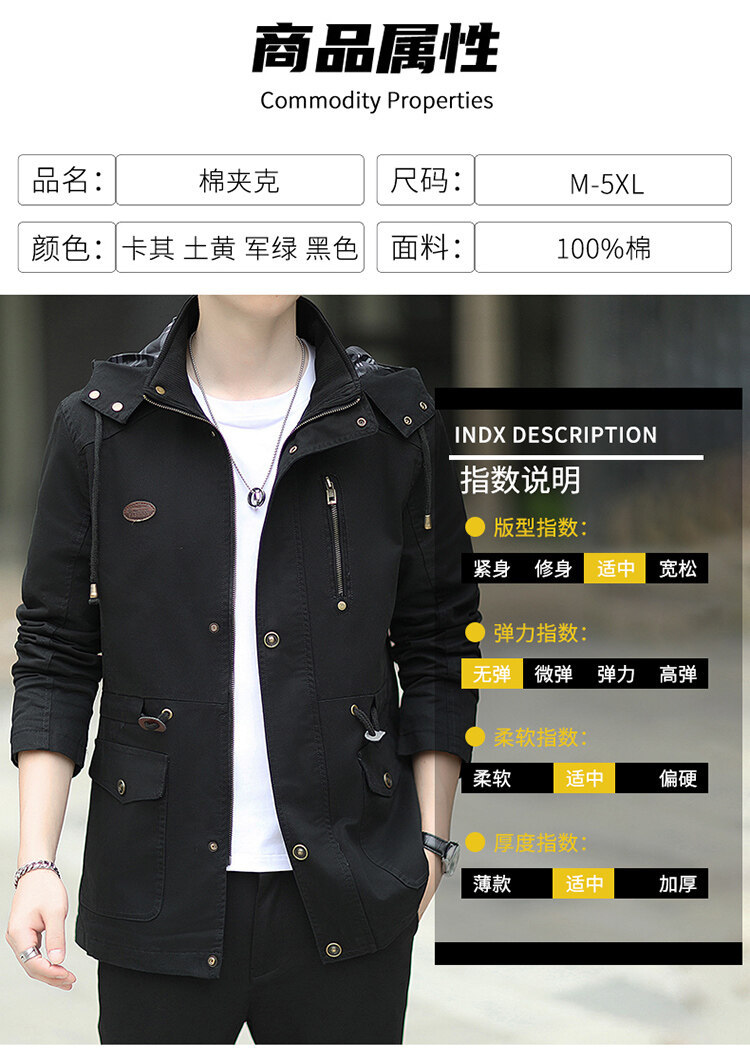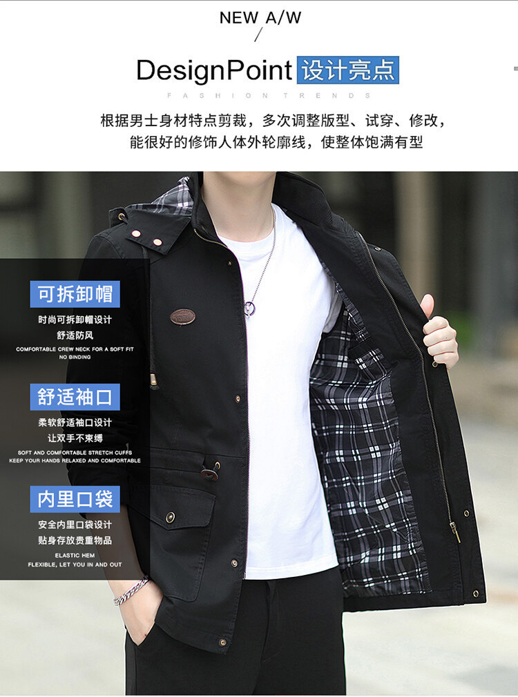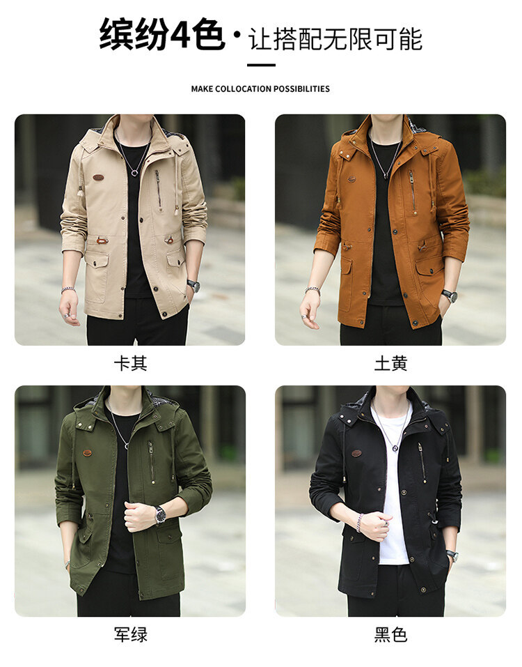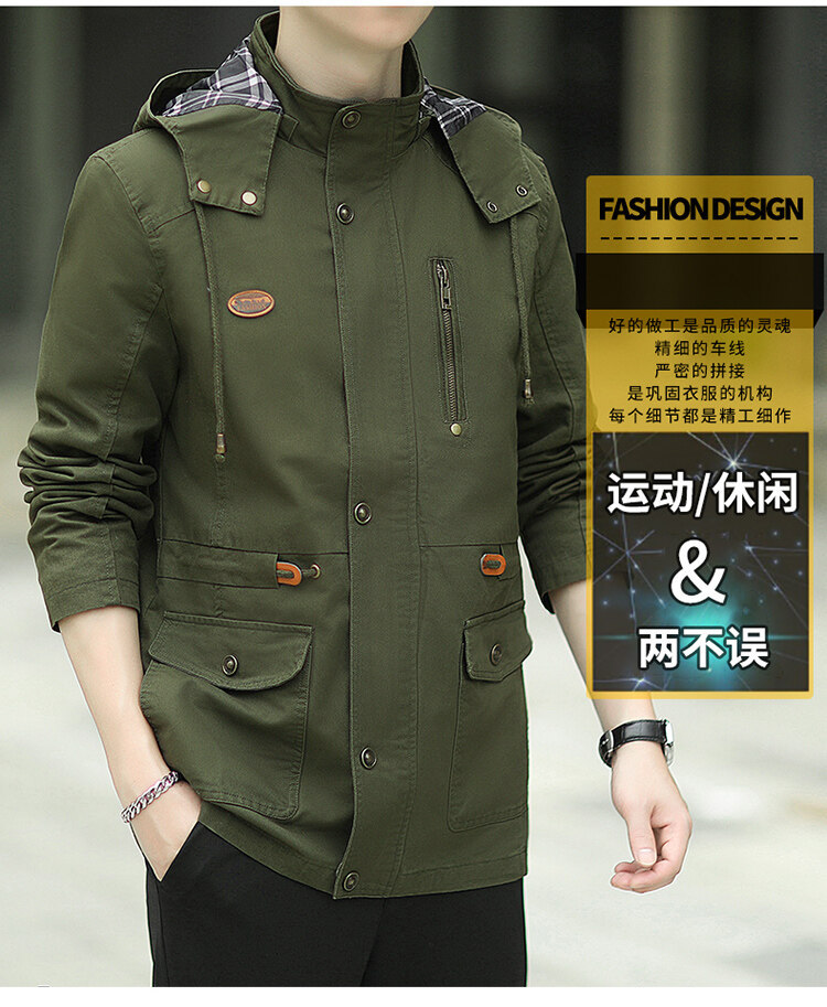 2022春秋季纯棉水洗夹克男宽松休闲新款风衣中长款工装外套大码