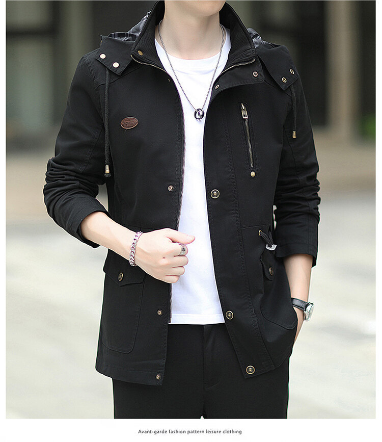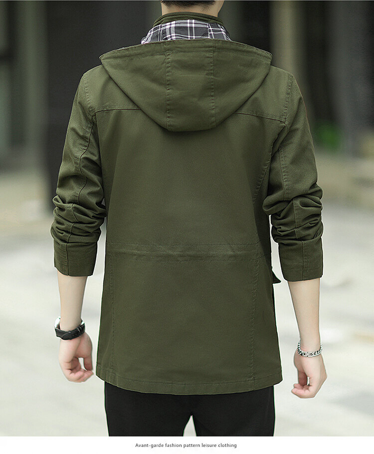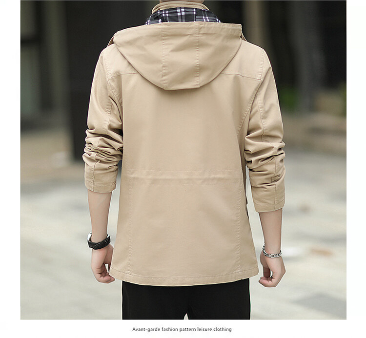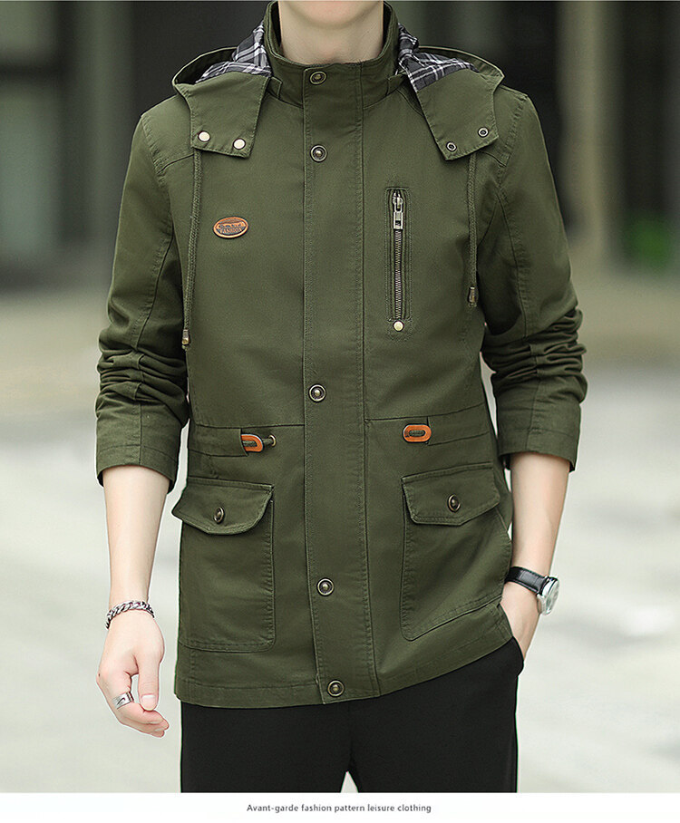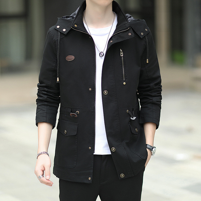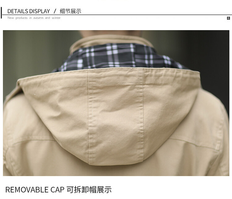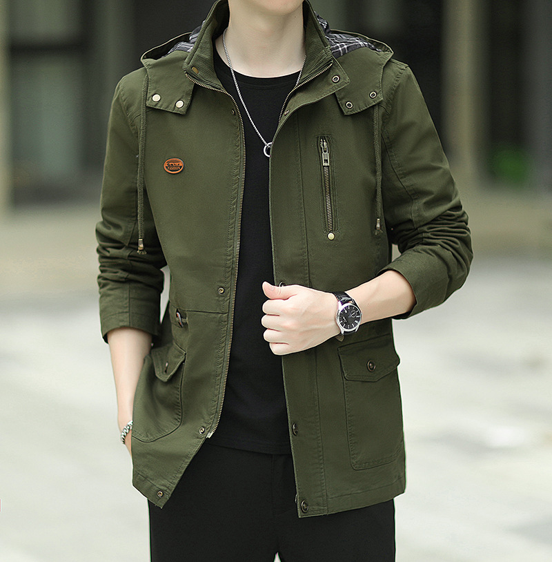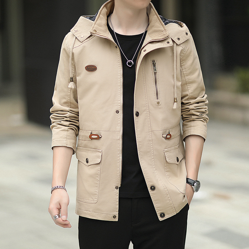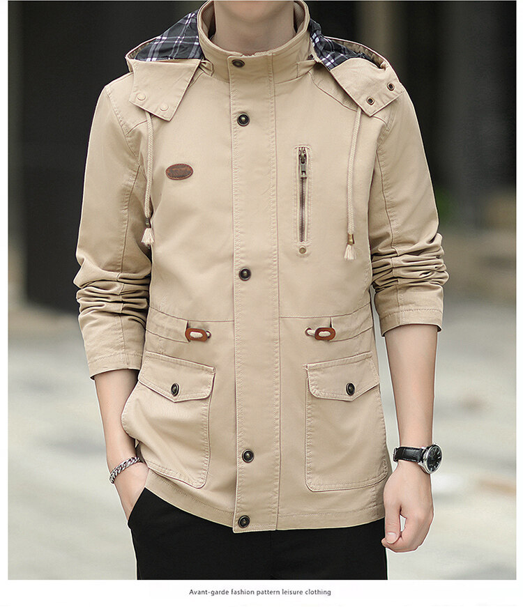 2022春秋季纯棉水洗夹克男宽松休闲新款风衣中长款工装外套大码