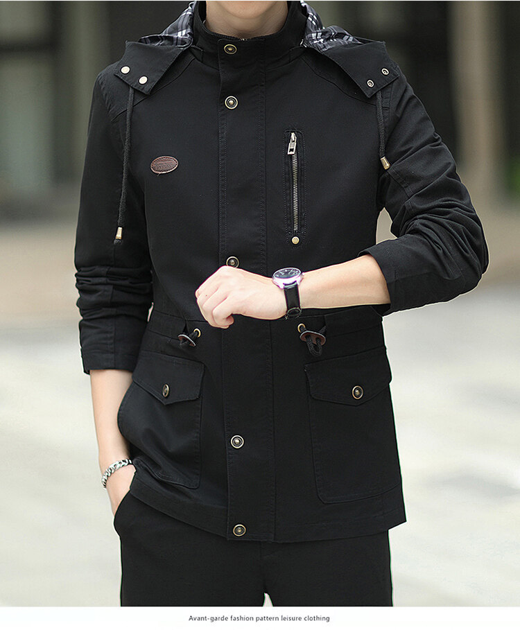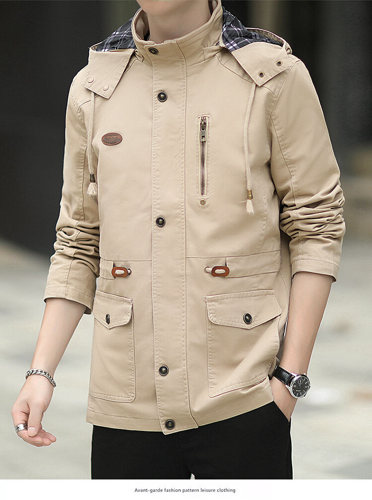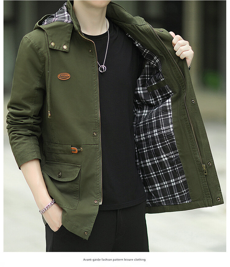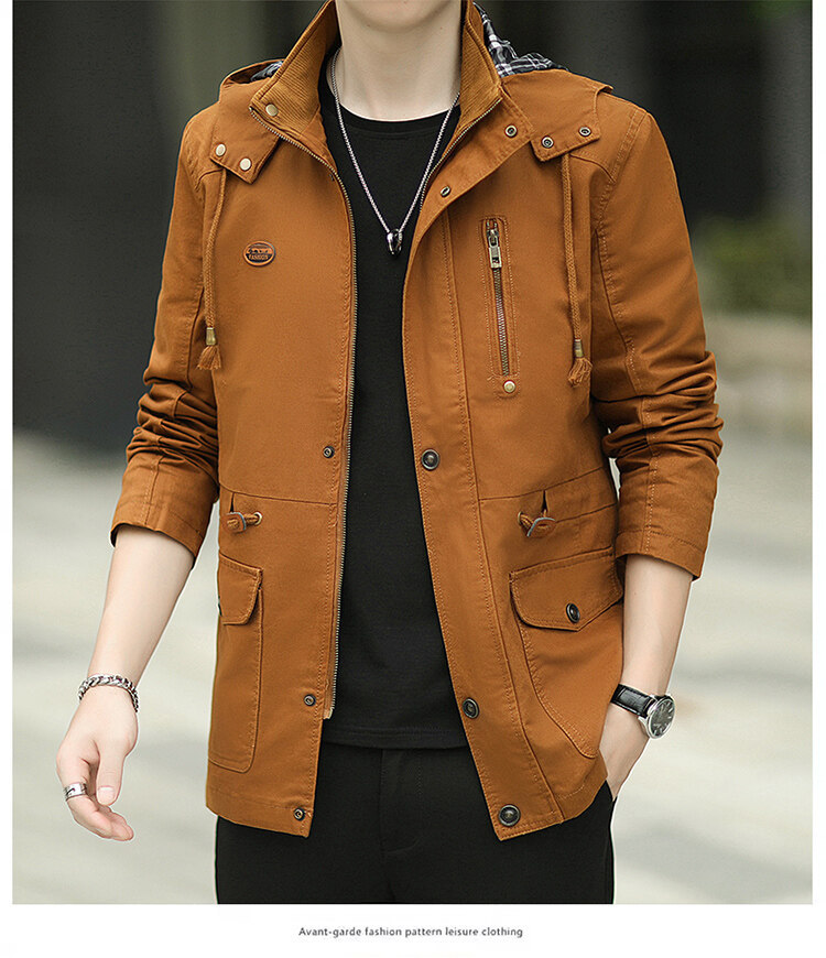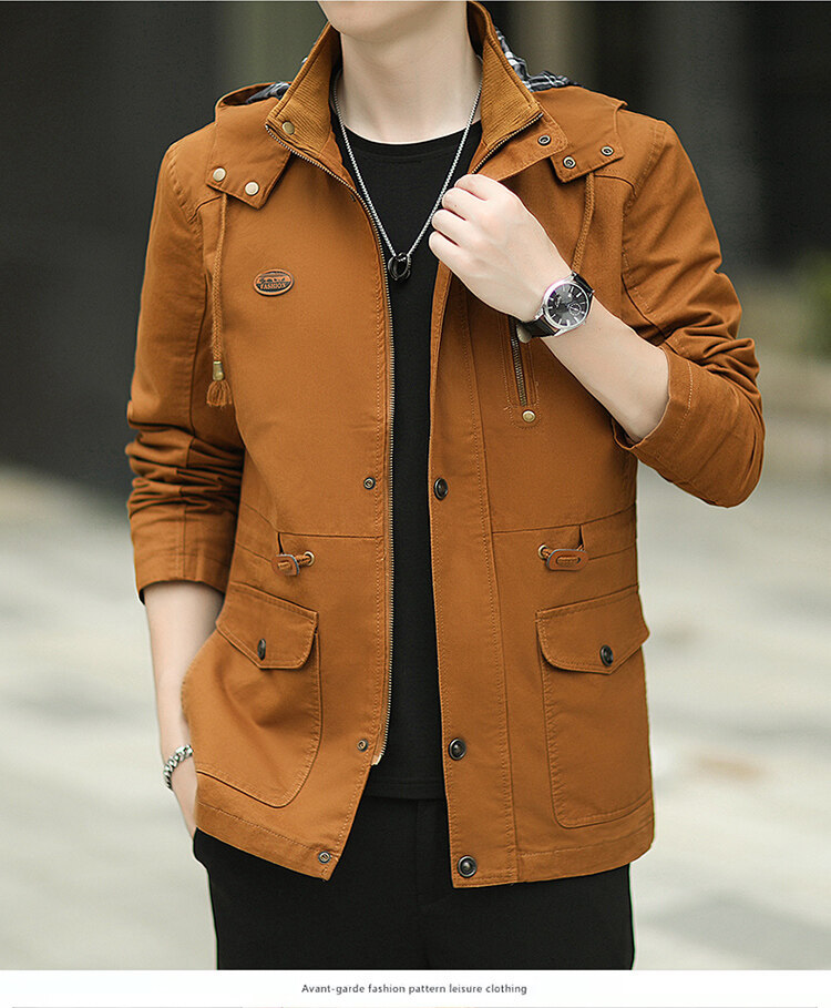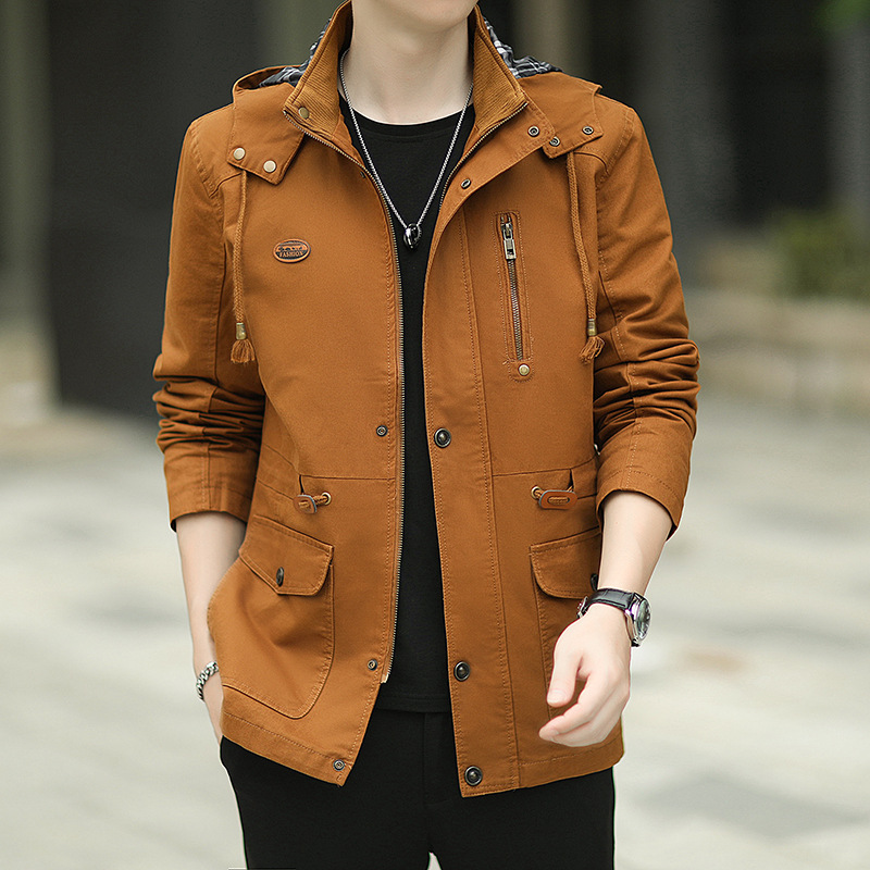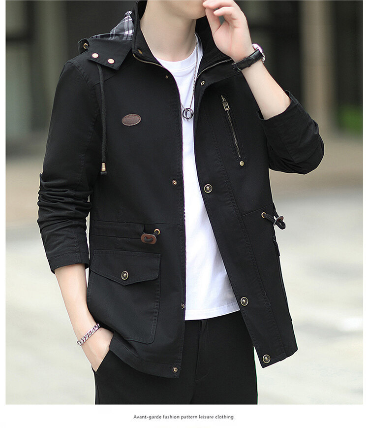 2022春秋季纯棉水洗夹克男宽松休闲新款风衣中长款工装外套大码