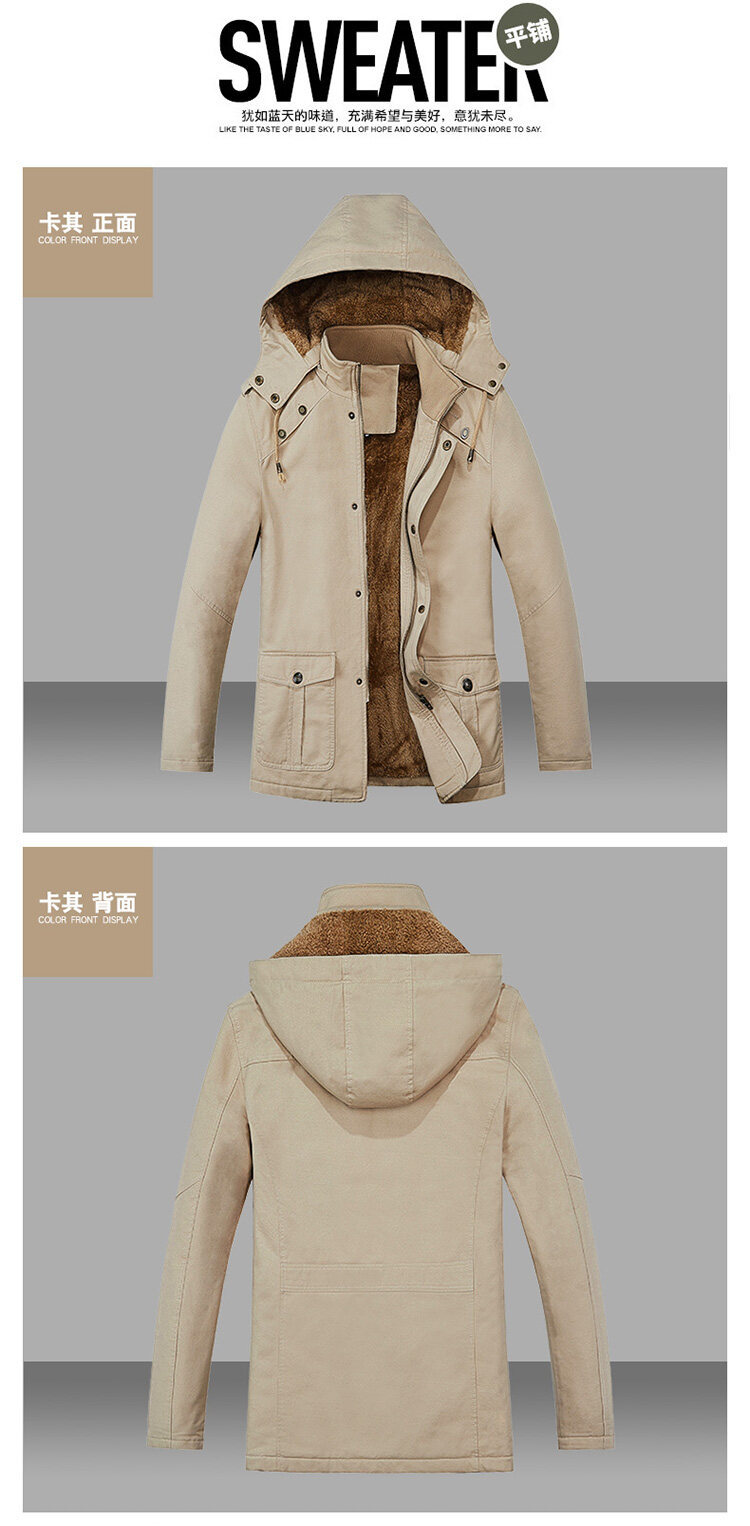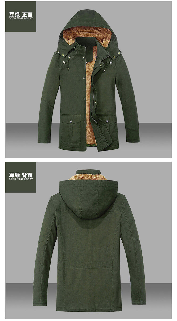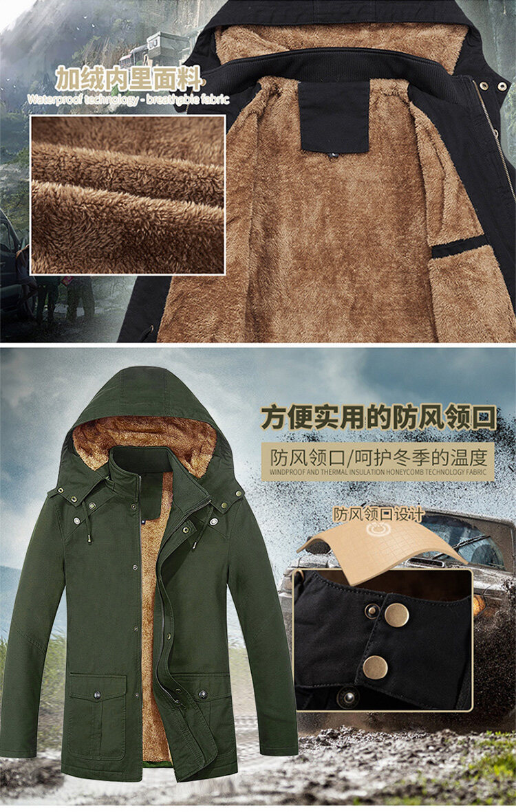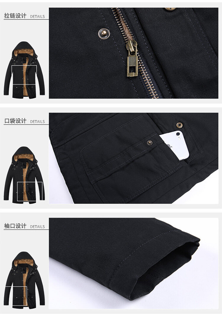 2022秋冬季新款加绒加厚水洗纯棉夹克男式中长款风衣外套大码潮
