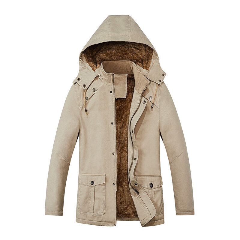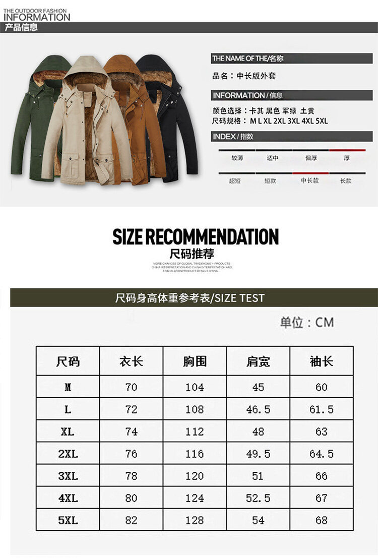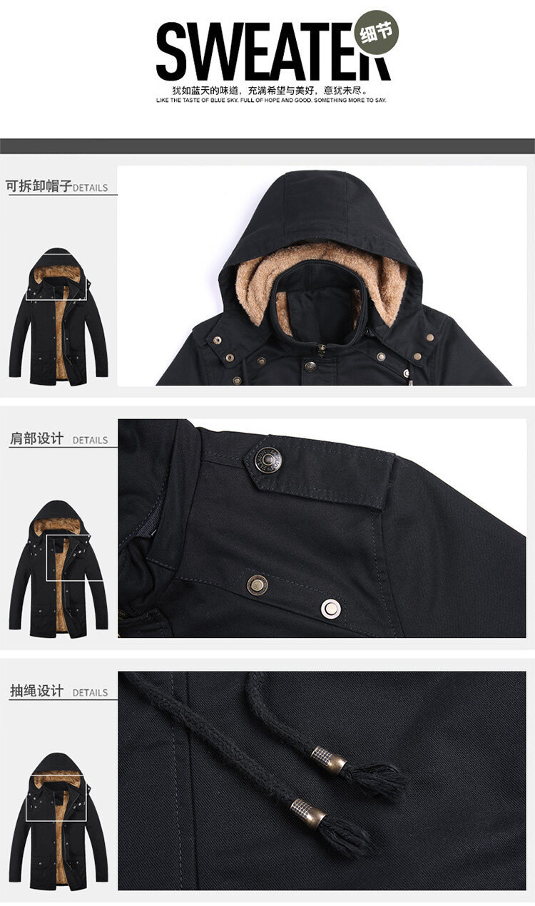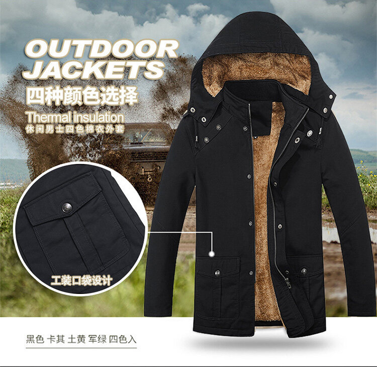 2022秋冬季新款加绒加厚水洗纯棉夹克男式中长款风衣外套大码潮