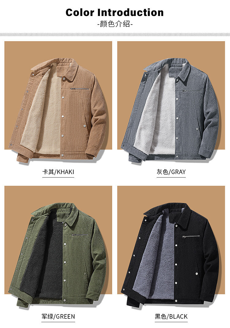 2022新款棉衣男秋冬装外套灯芯绒棉服加厚羊羔绒加绒夹克