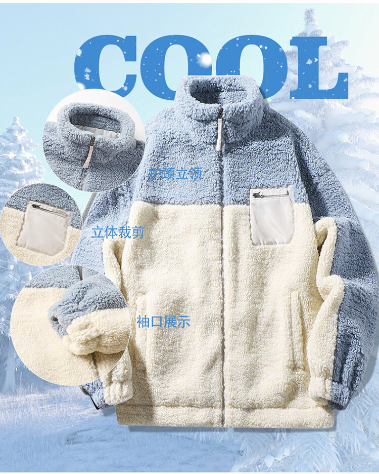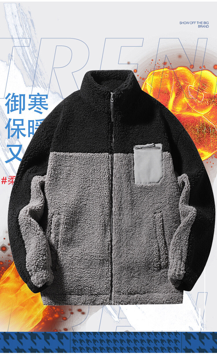 棉衣男冬季羊羔毛外套男士韩版潮加绒加厚宽松羊羔绒连帽毛绒棉服