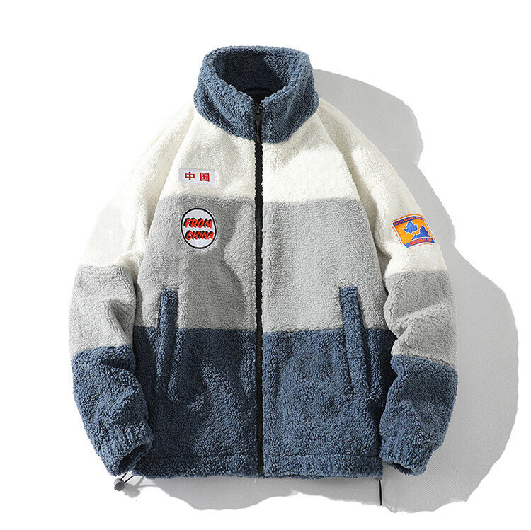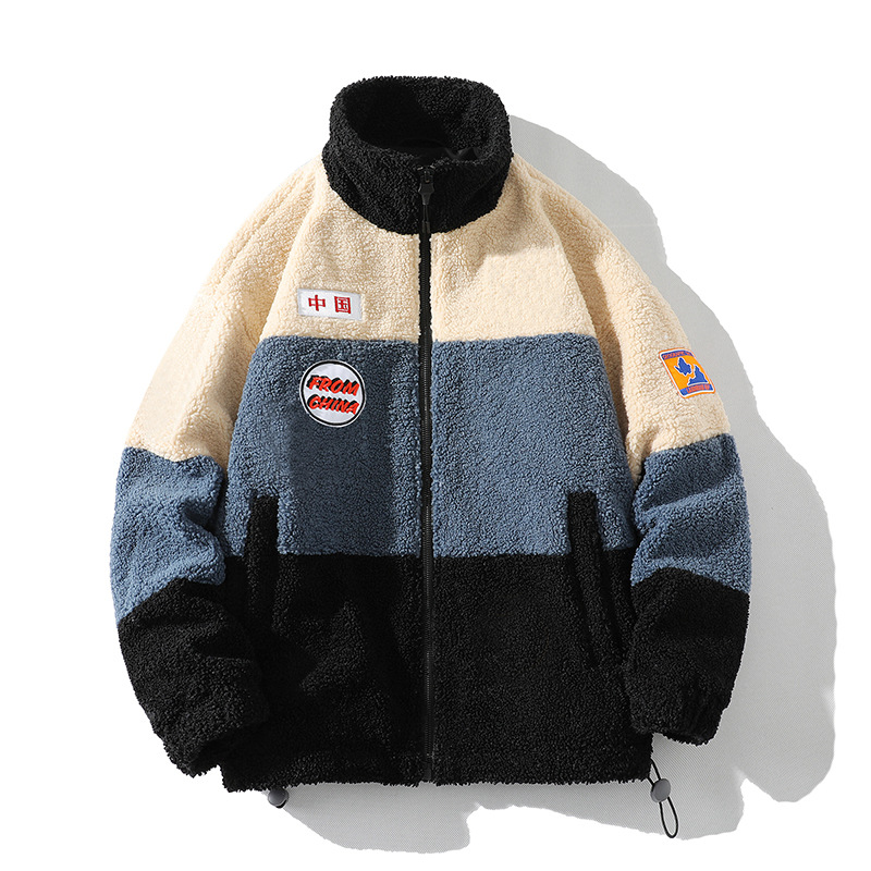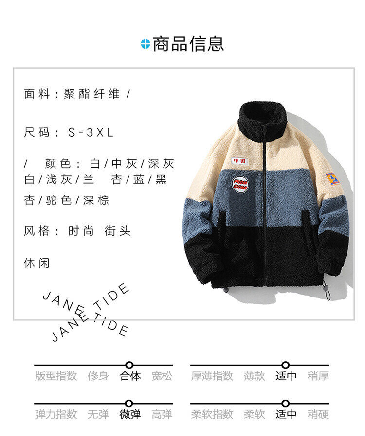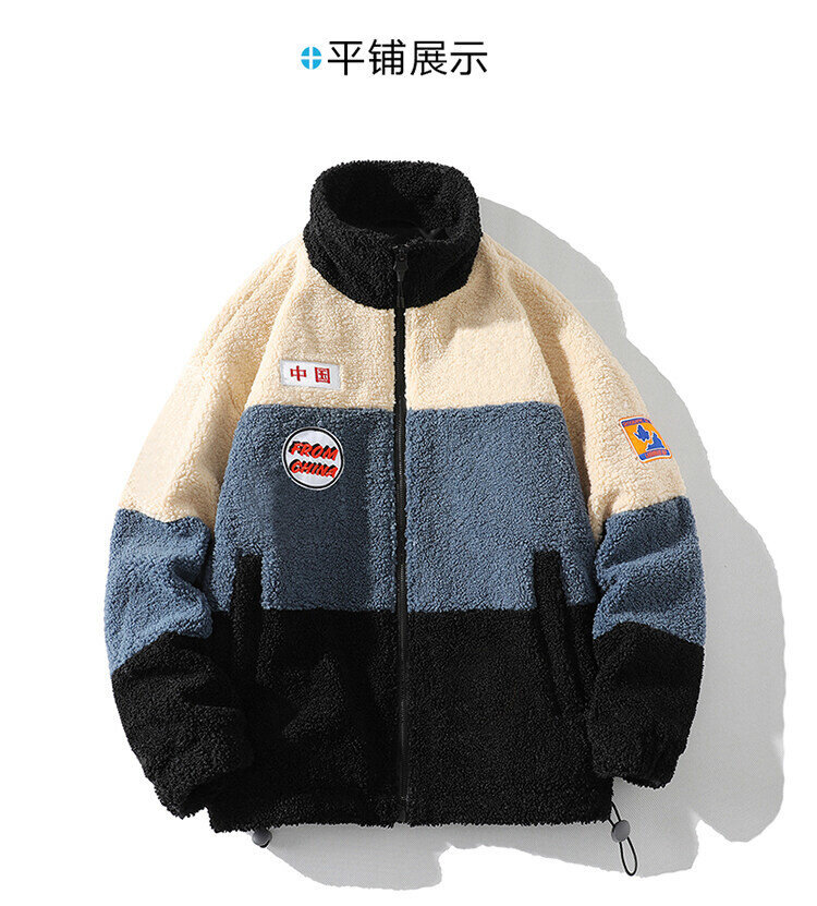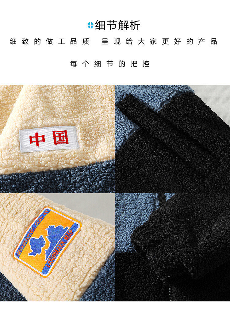 2022冬季时尚羊羔绒棉衣撞色加绒外套户外抓绒衣摇粒绒加厚绒棉
