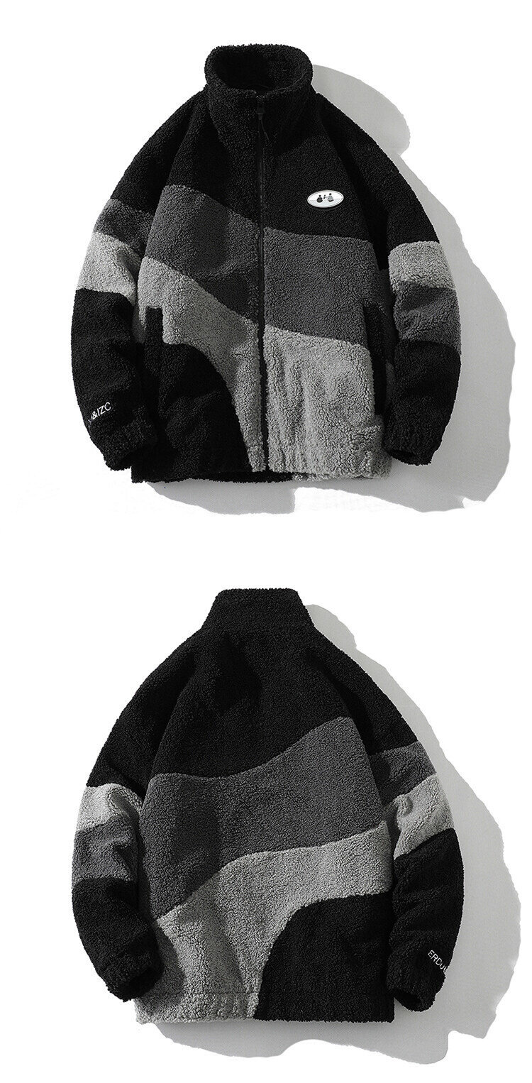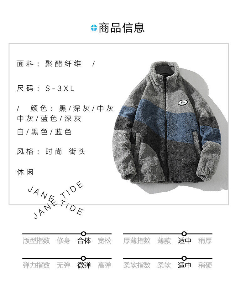 冬季时尚羊羔绒棉衣撞色加绒外套户外抓绒衣摇粒绒风衣加厚绒棉