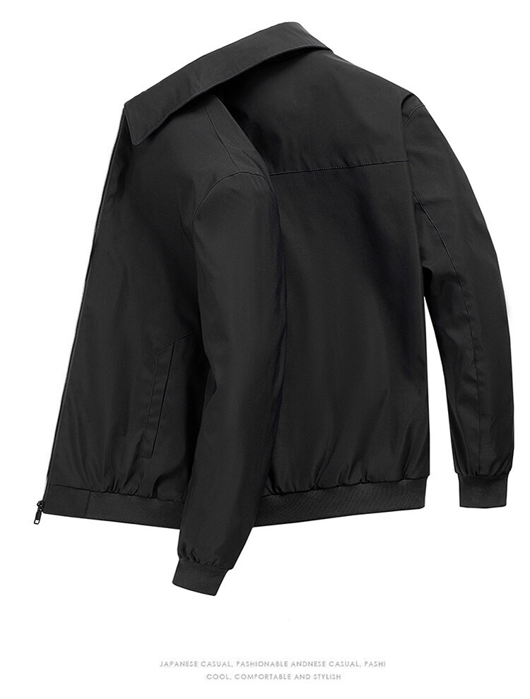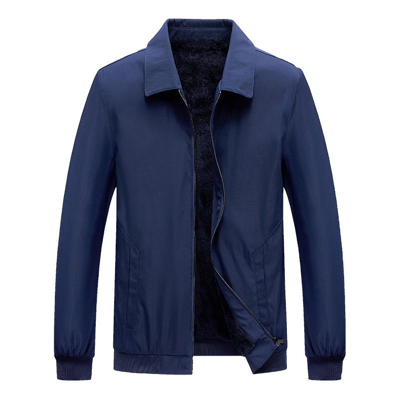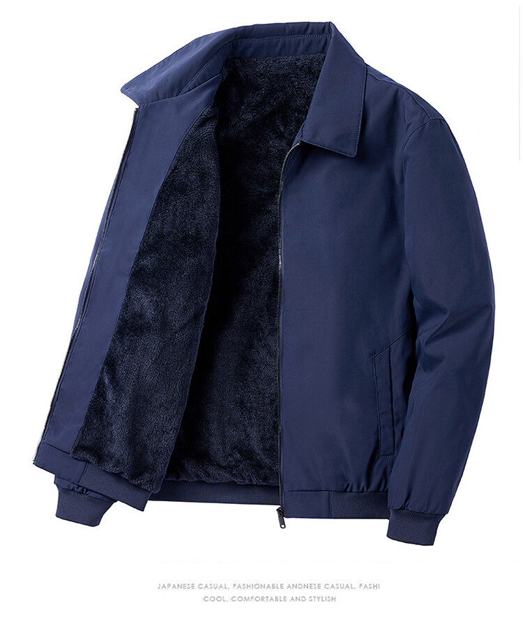 加绒夹克男2022男士商务装保暖加厚翻领中老年外套单衣/加绒