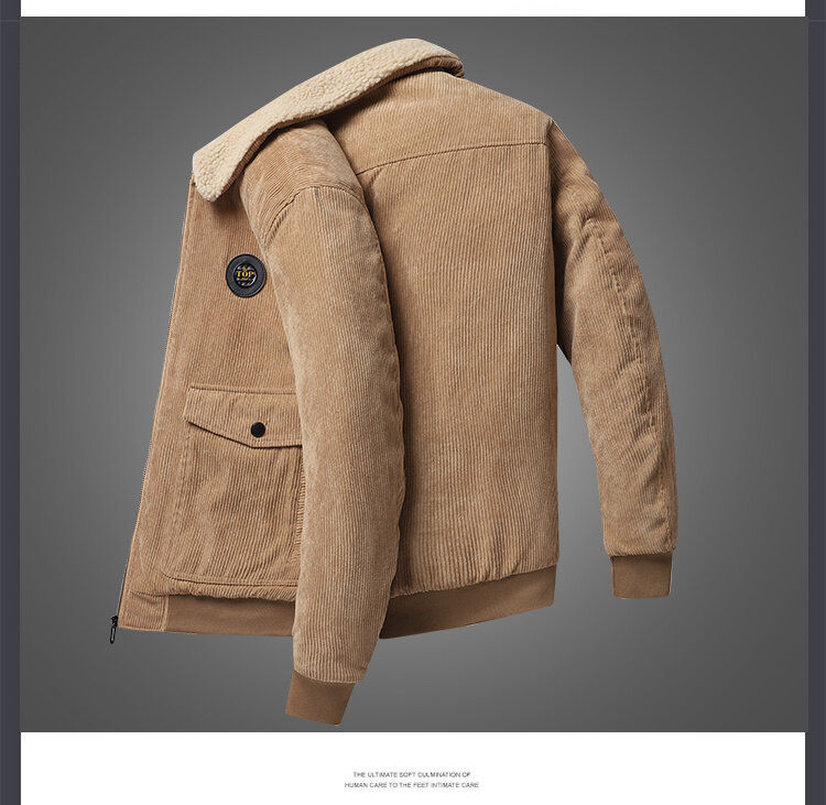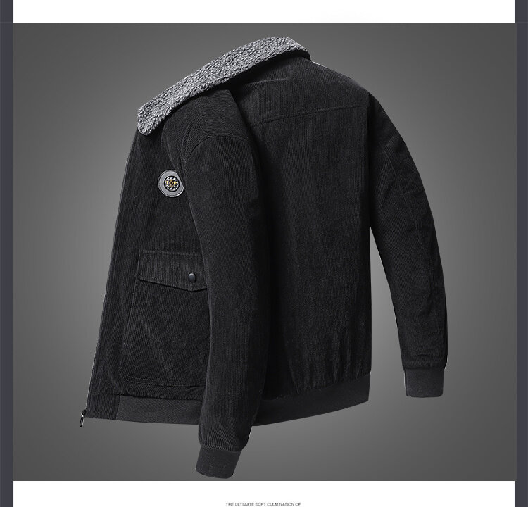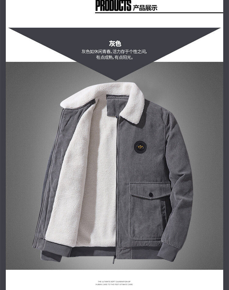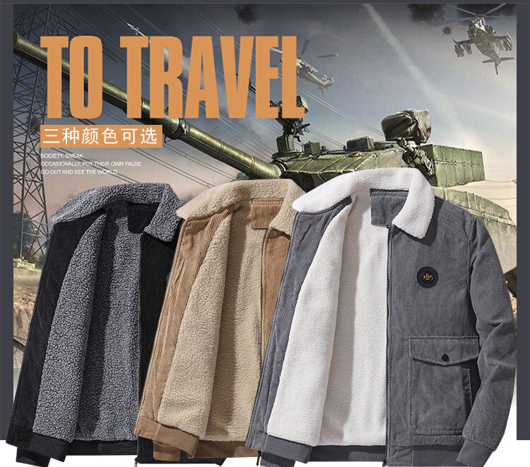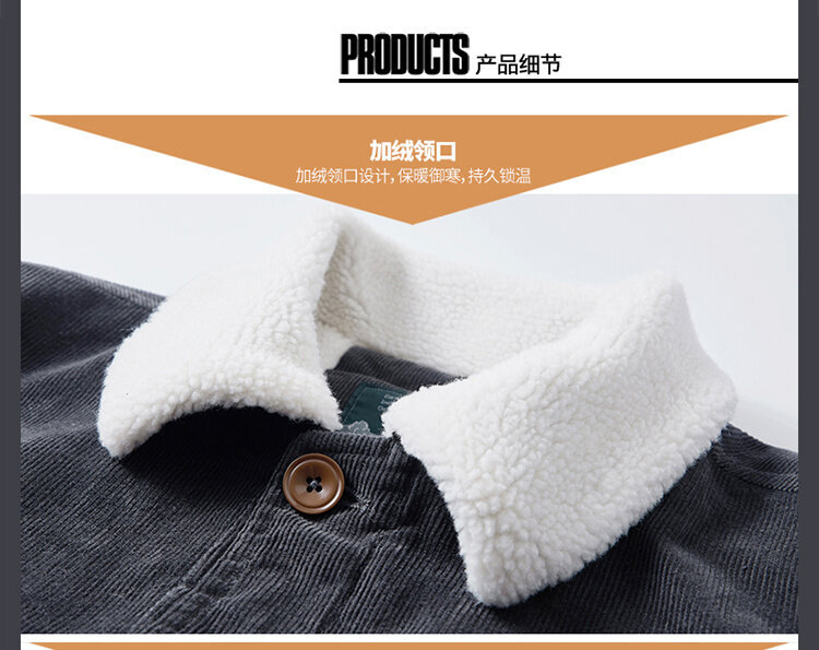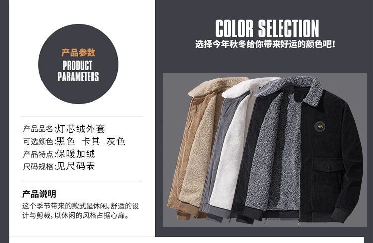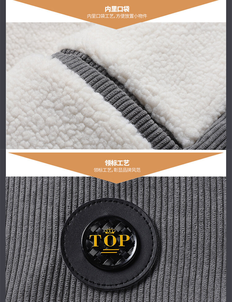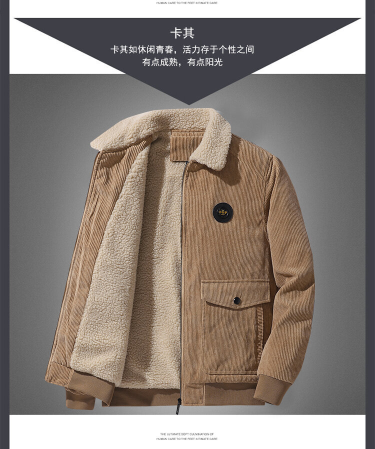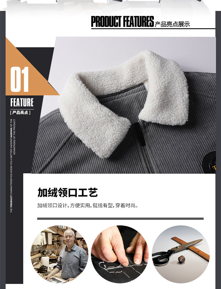 202新款夹克棉衣灯芯绒外套男士加绒羊羔绒冬季爸爸装休闲
