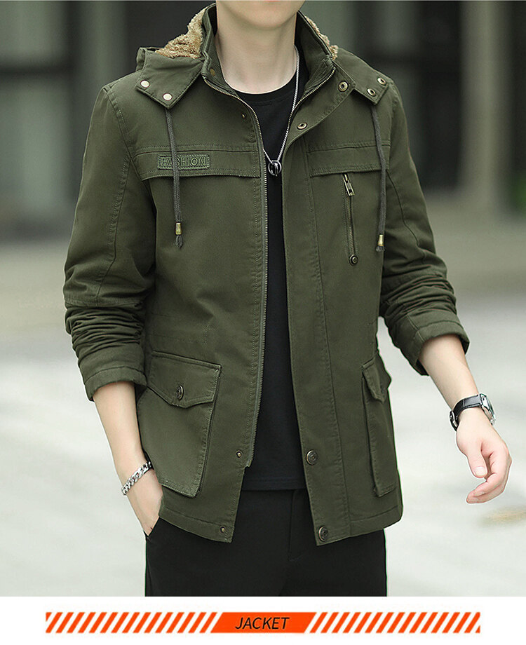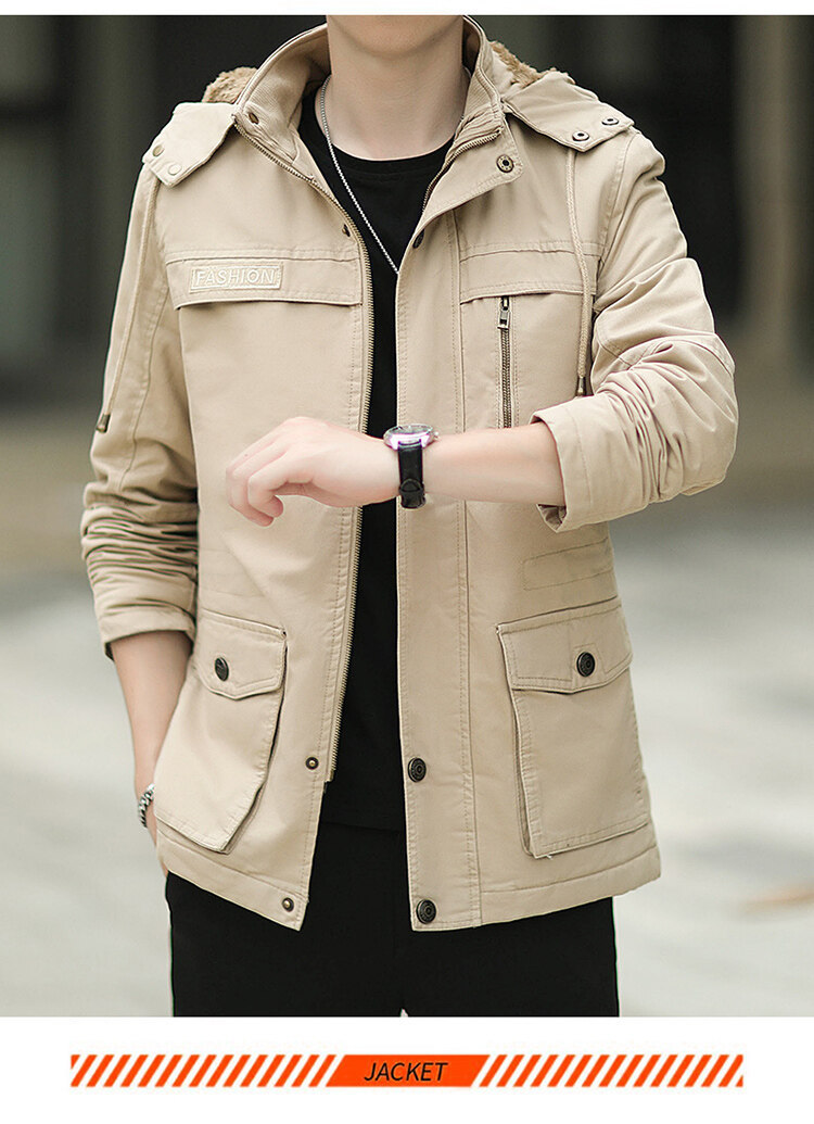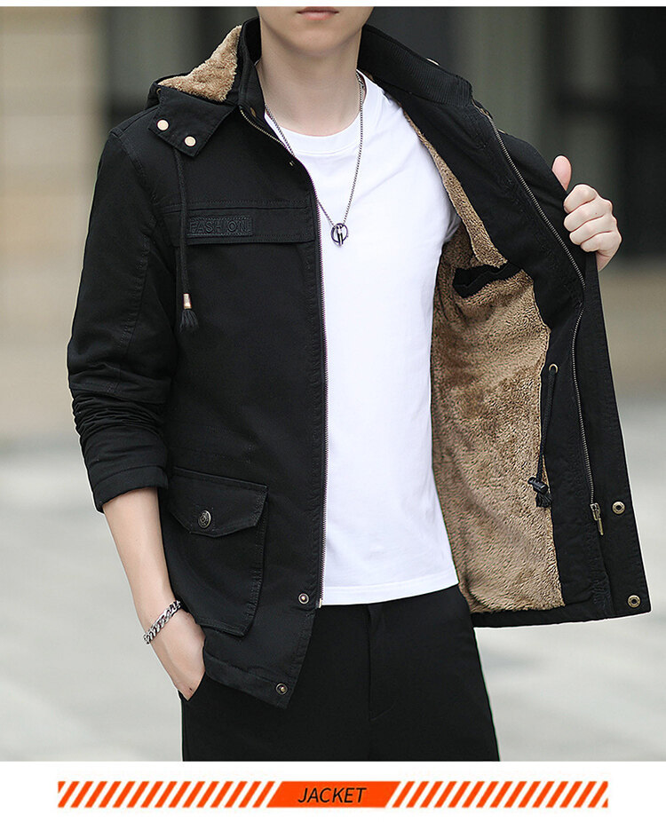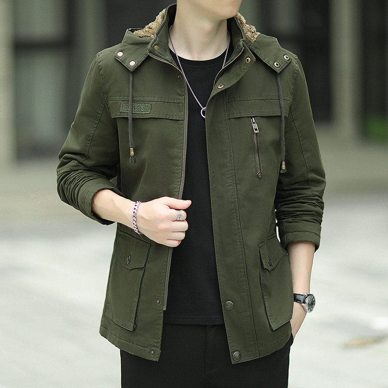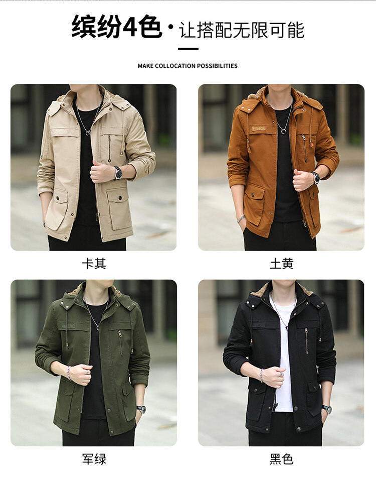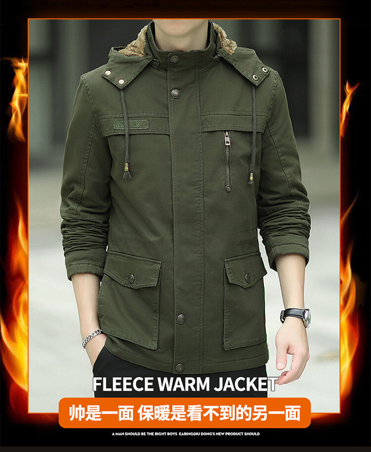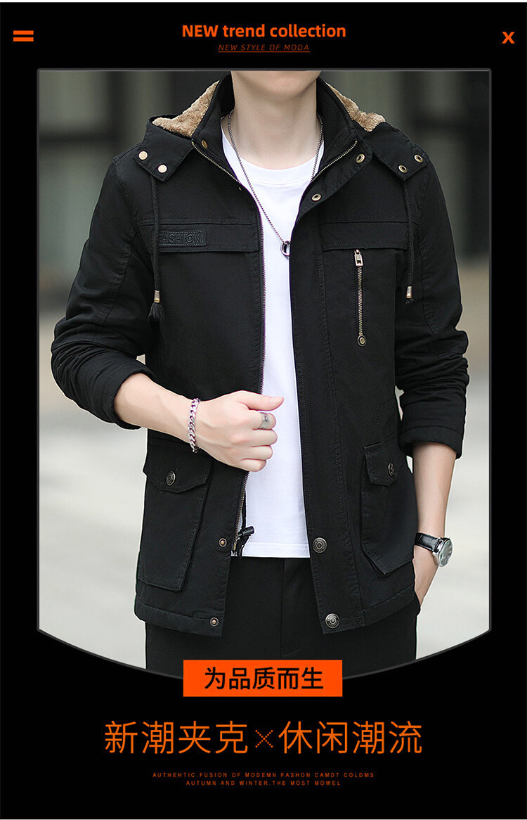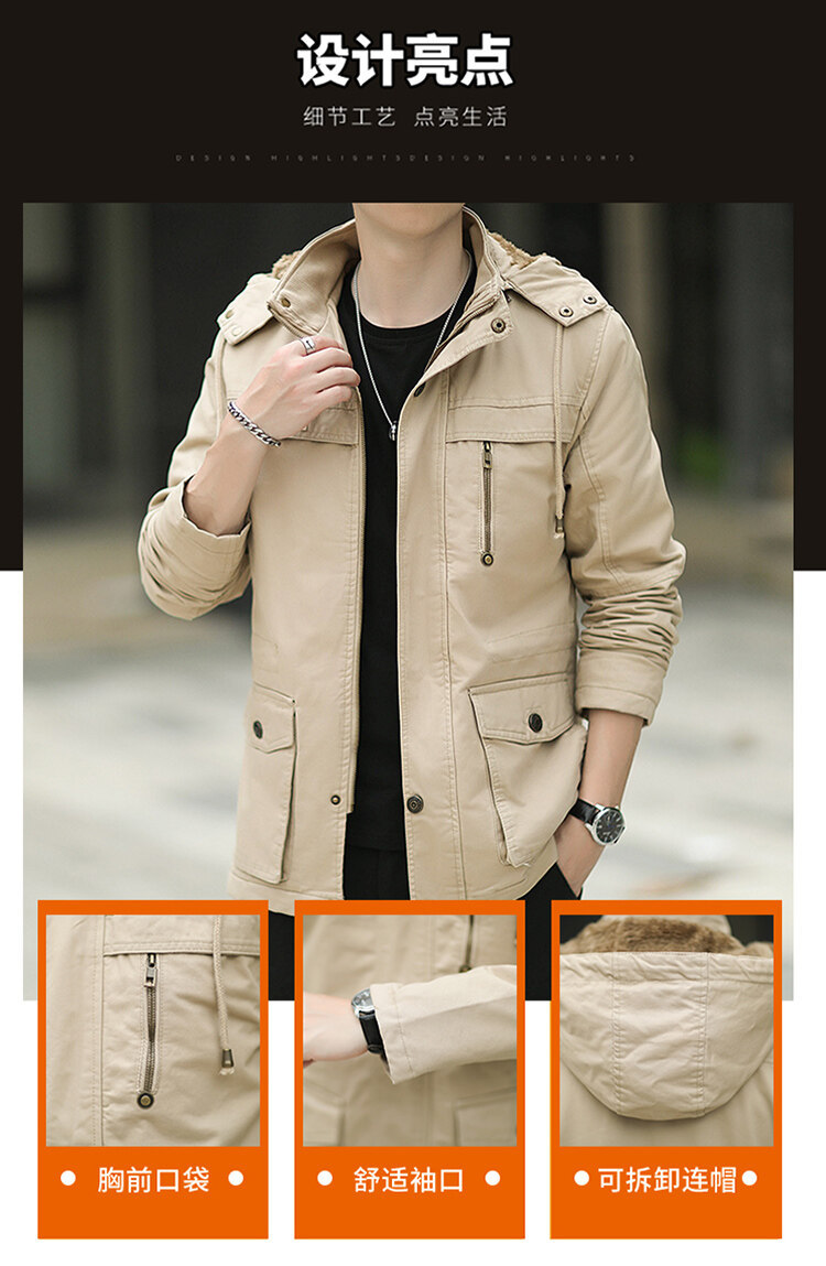 加绒加厚冬季2022新款外套男纯色户外运动夹克衫休闲大码保暖风衣