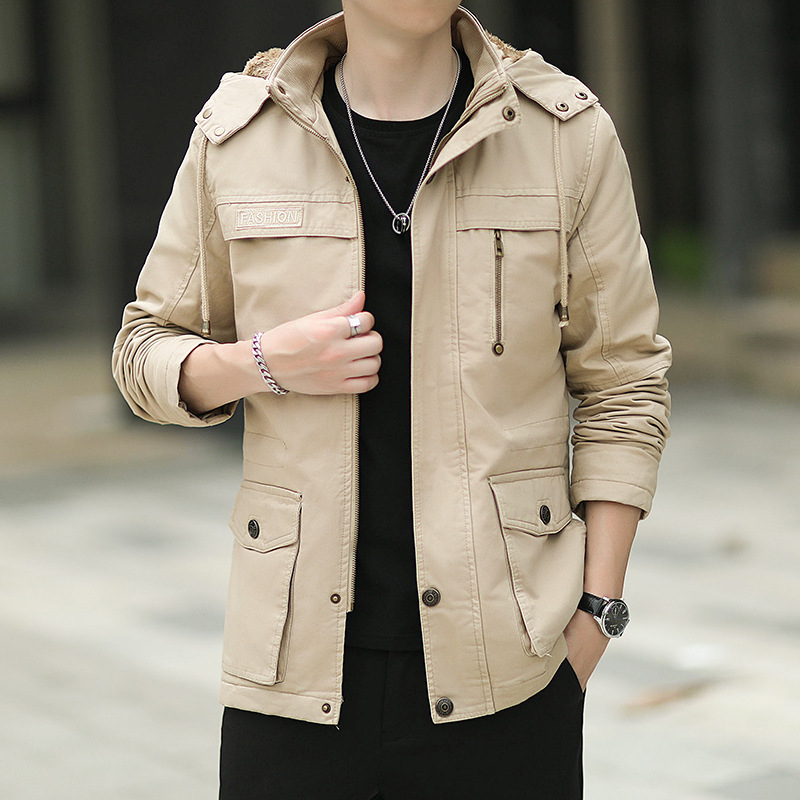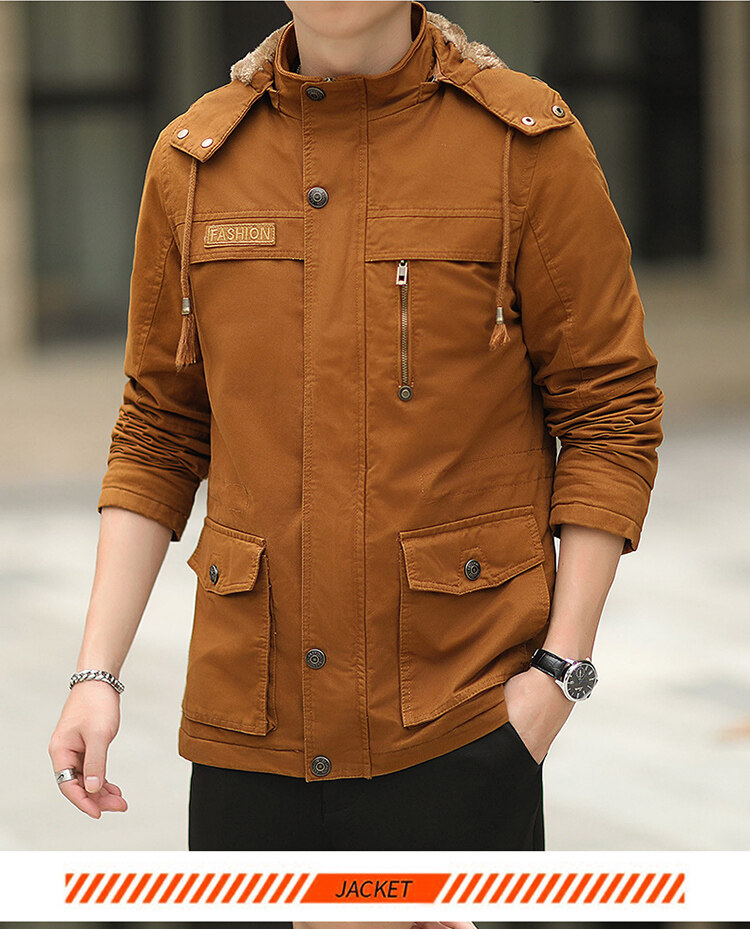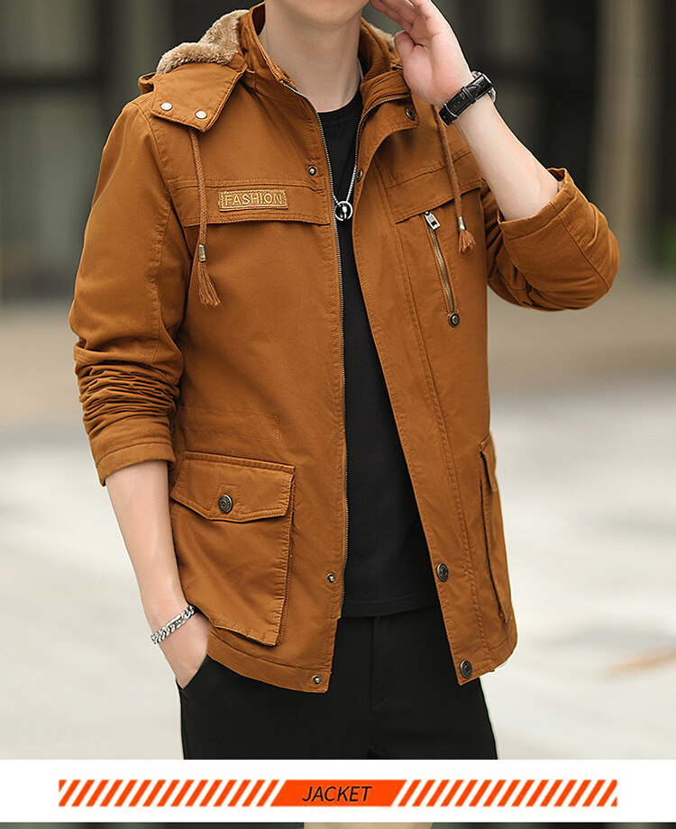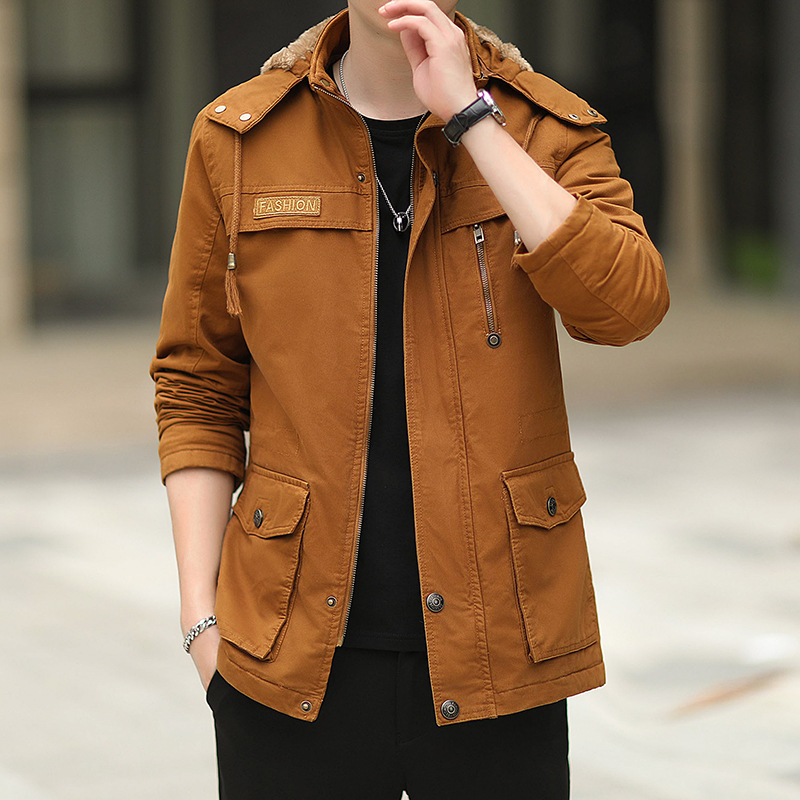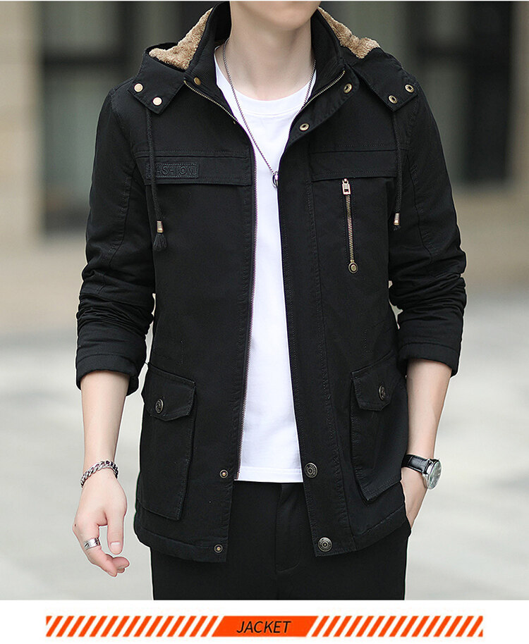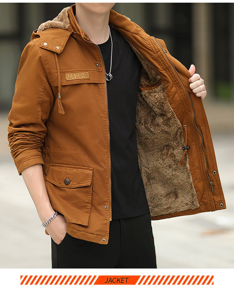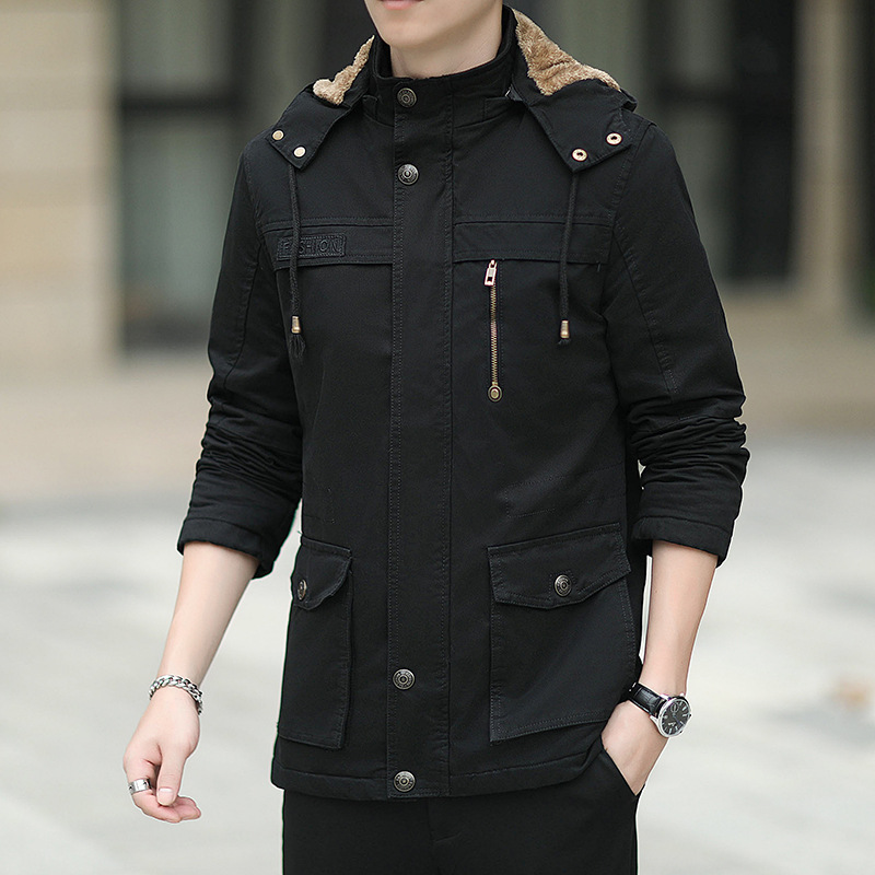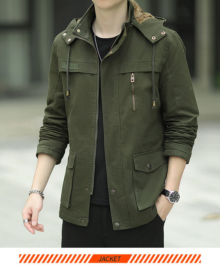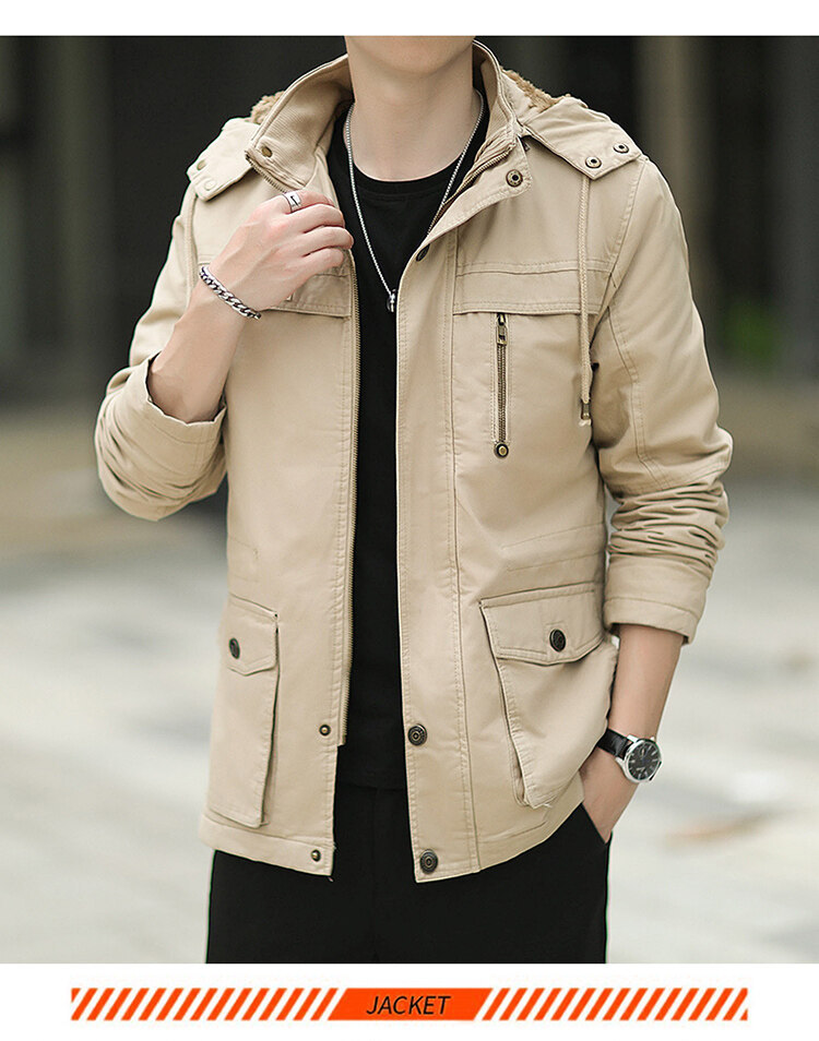 加绒加厚冬季2022新款外套男纯色户外运动夹克衫休闲大码保暖风衣