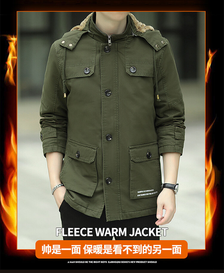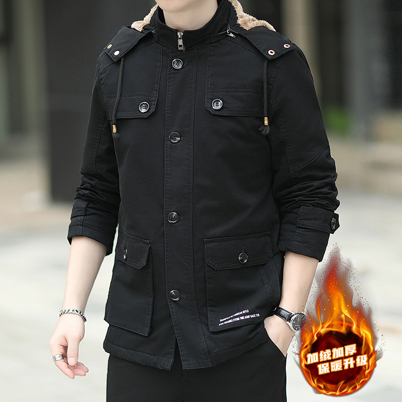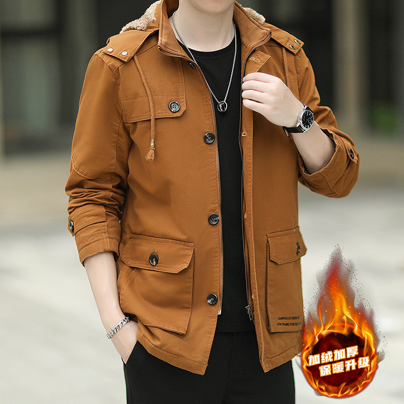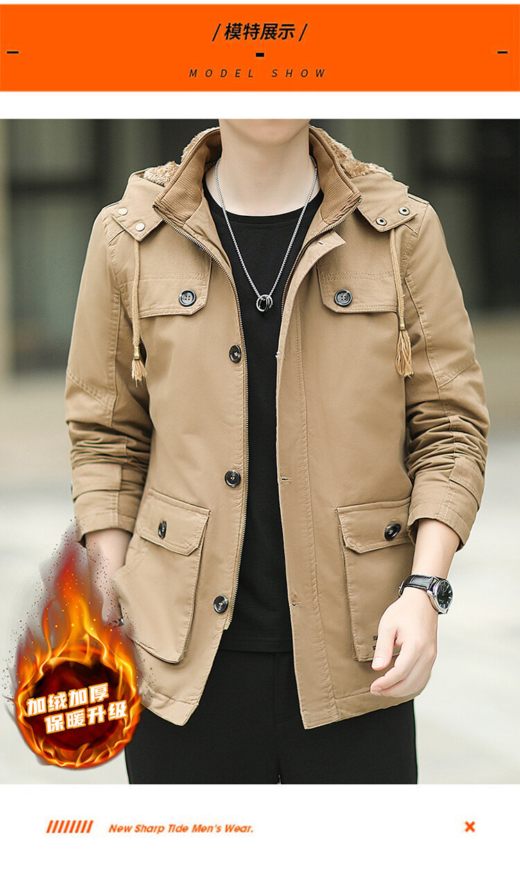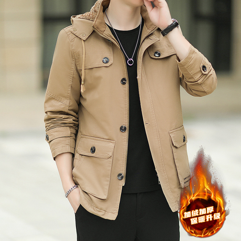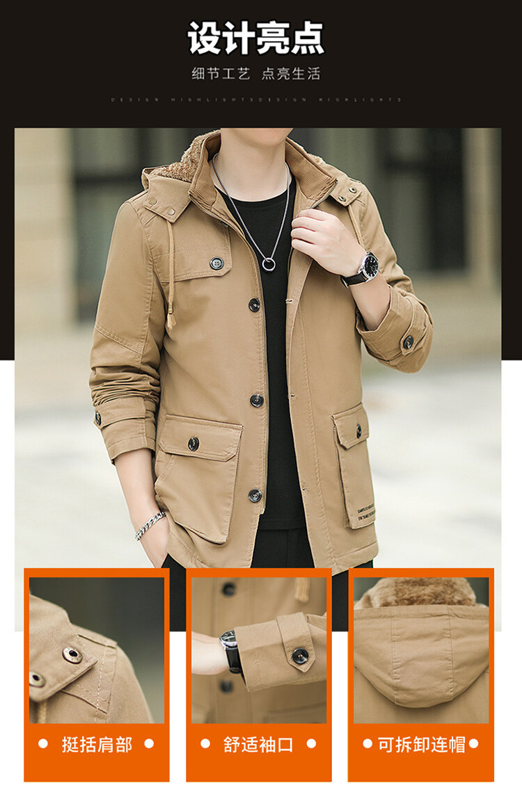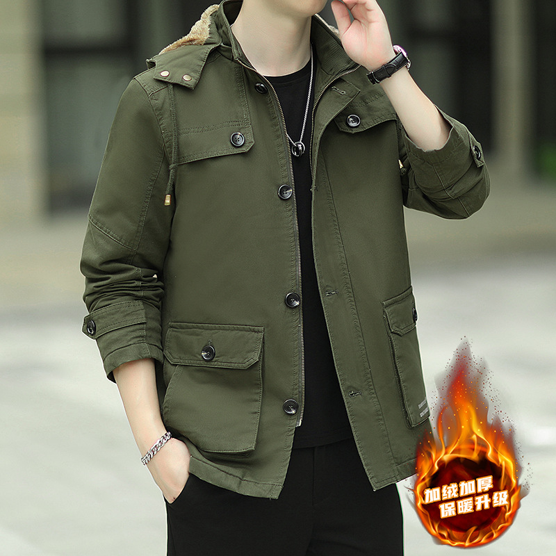 防风衣保暖外套男款2022秋冬季新款运动服男士加绒加厚连帽夹克潮