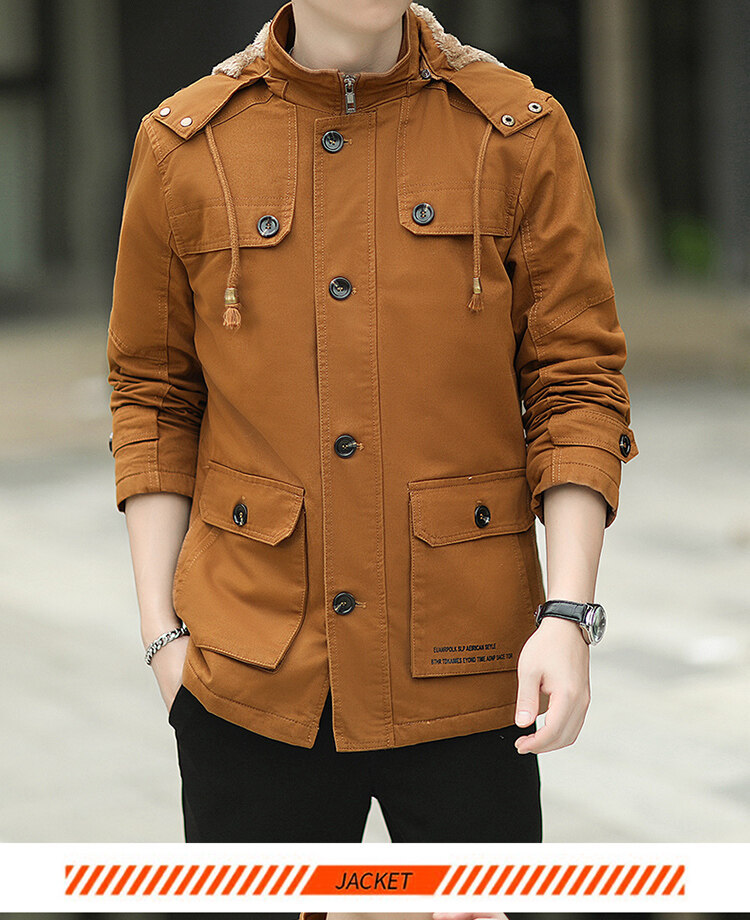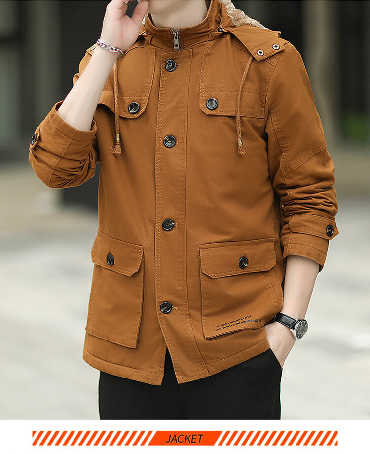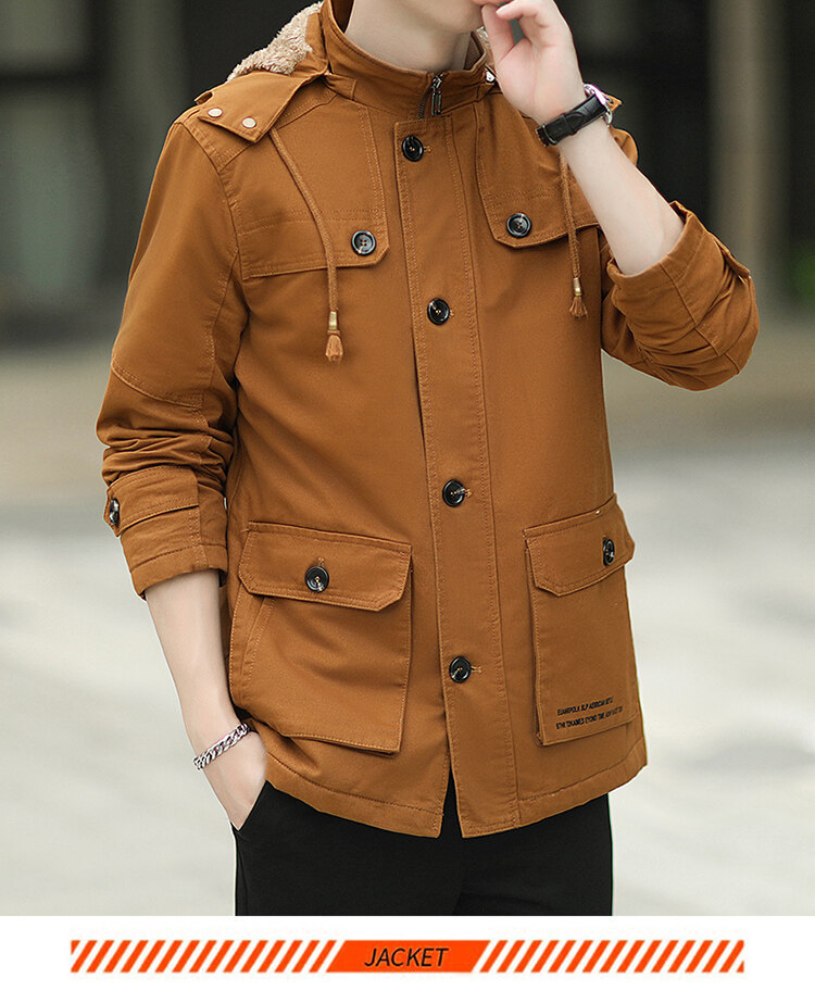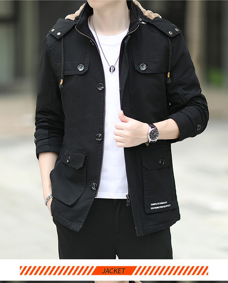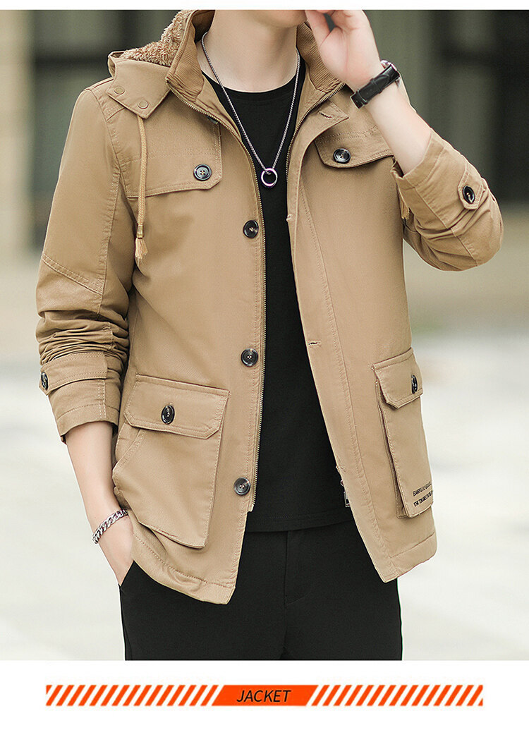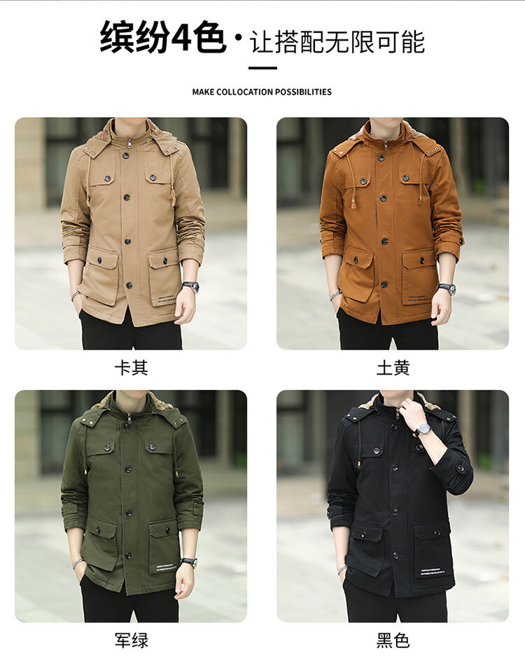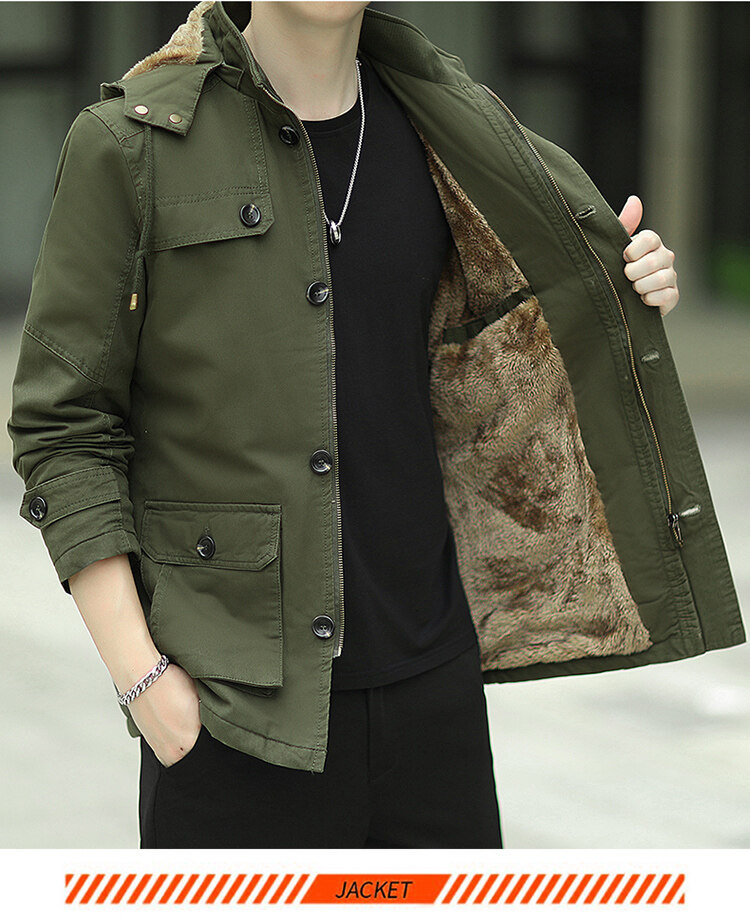 防风衣保暖外套男款2022秋冬季新款运动服男士加绒加厚连帽夹克潮