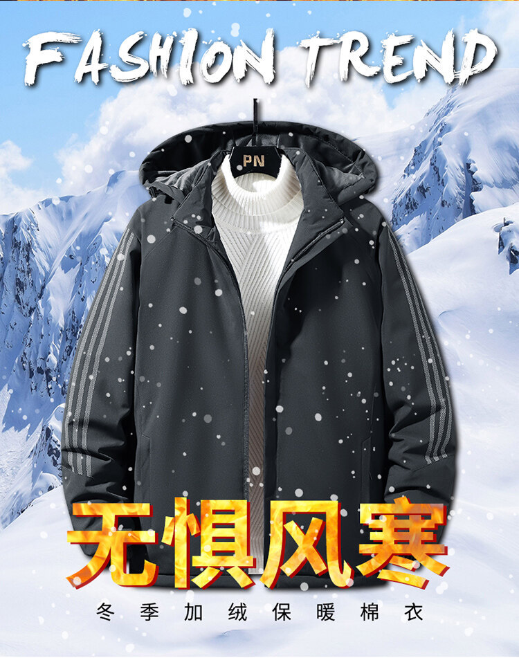 新款宽松大码棉衣男加厚保暖棉服连帽青年冬季外套男韩版潮流男士
