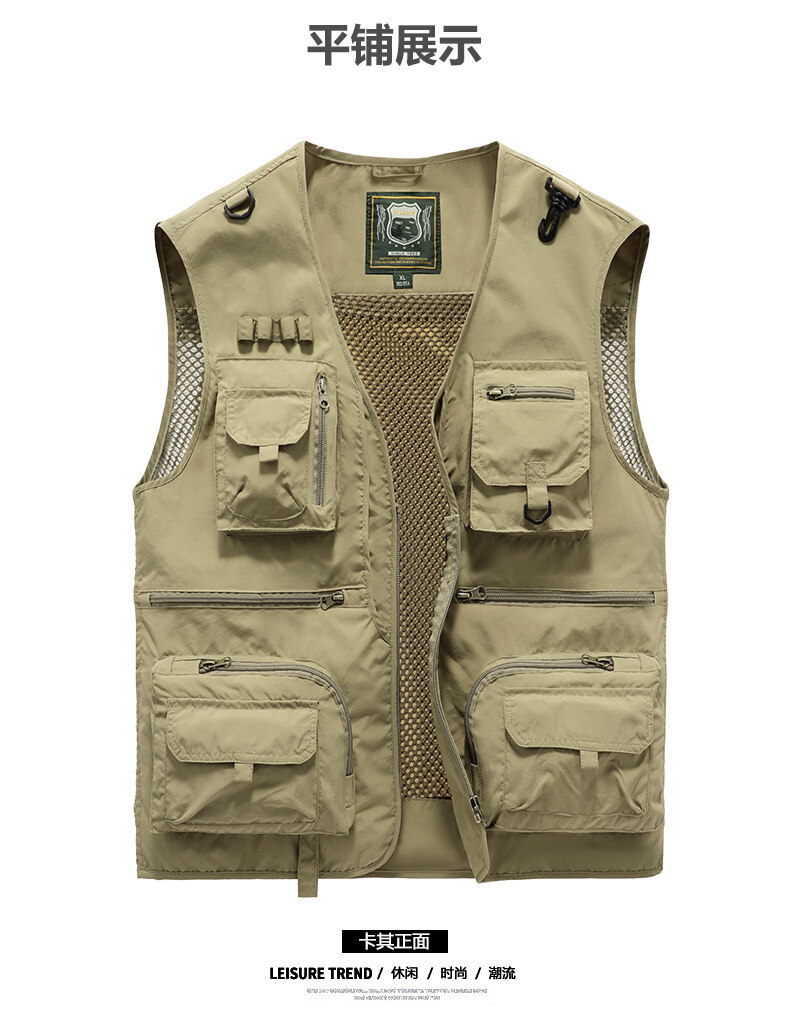 2022男装马甲户外轻薄摄影背心夏天休闲多口袋钓鱼网眼马甲