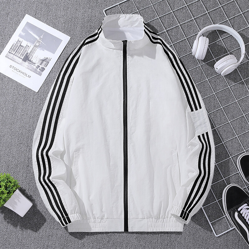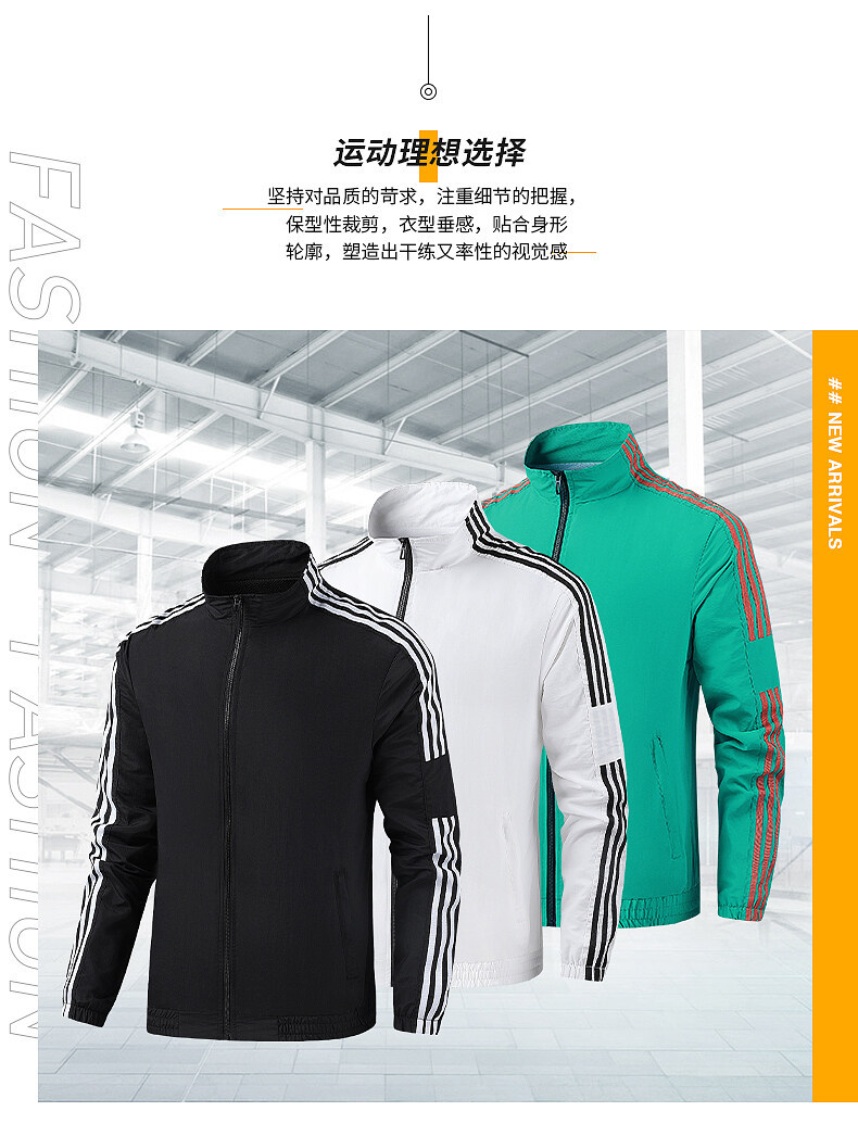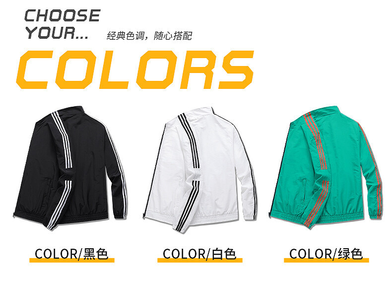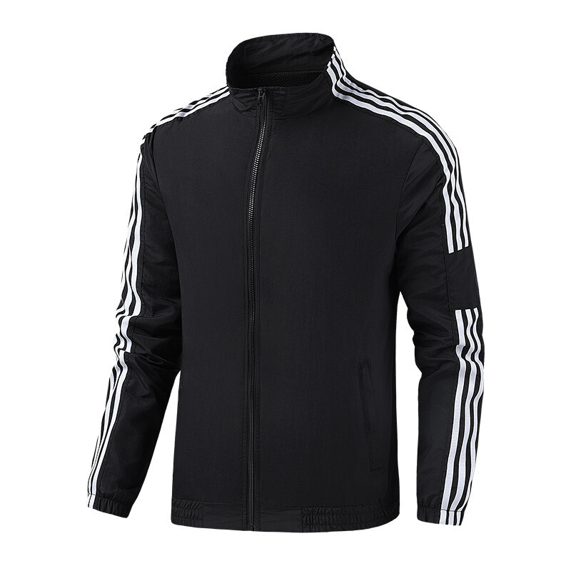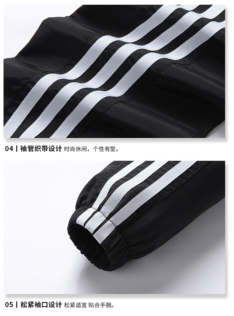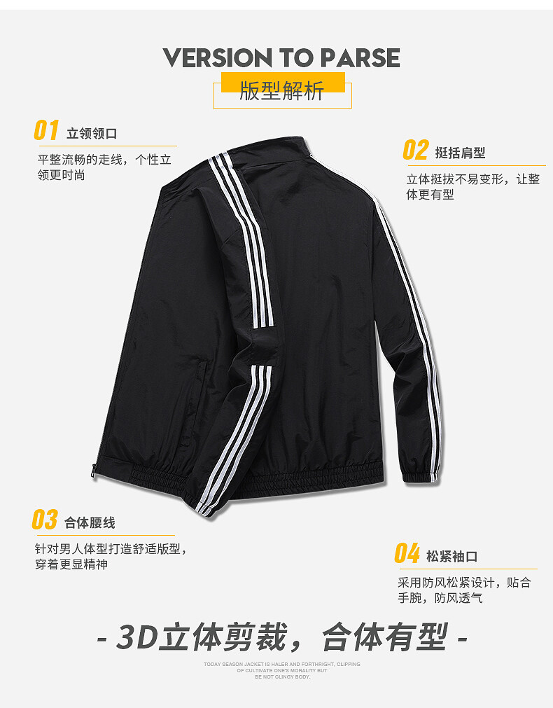 夹克男士运动休闲宽松春秋新款三条杠纯色立领户外跑步时尚外套