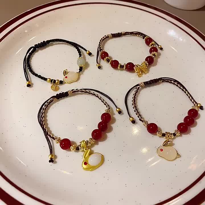 饰品相思豆蝴蝶结玉兔福字手链本命年红珠兔年红绳手串气质手饰