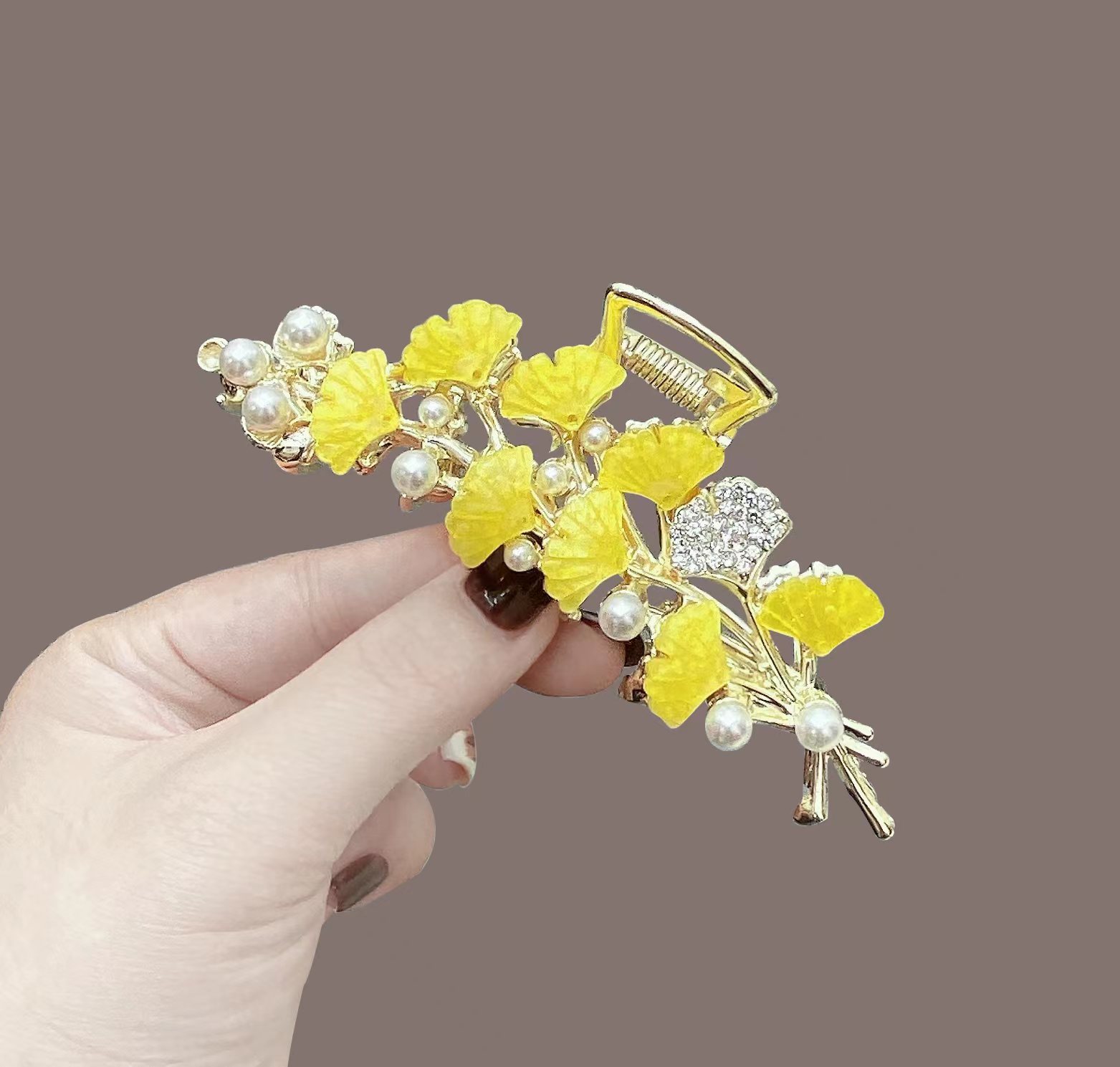 金属发抓银杏叶抓夹古风珍珠爪夹合金洗澡抓夹