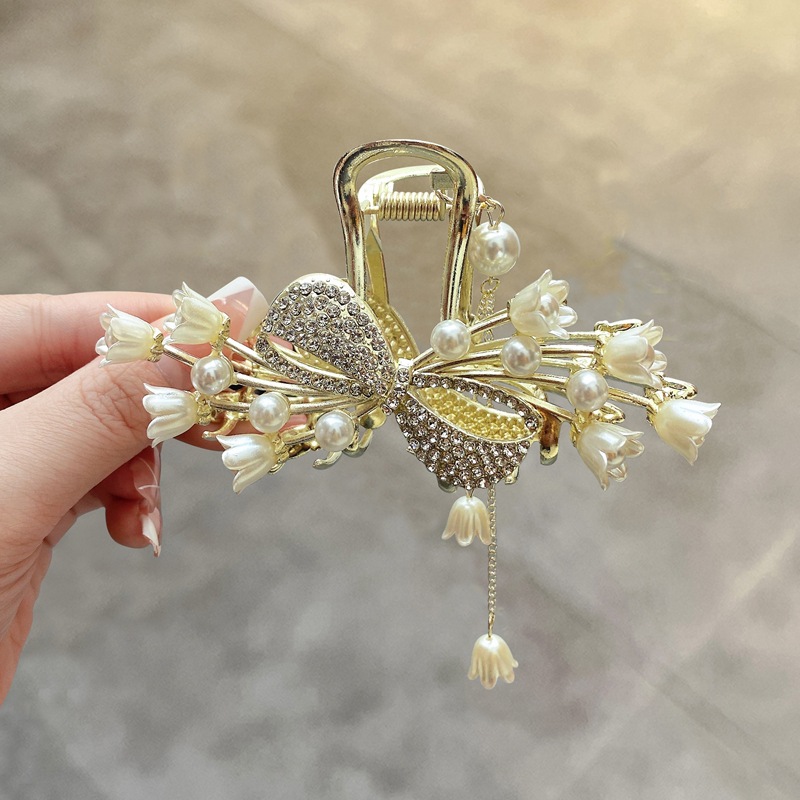 古风铃兰花流苏大号抓夹蝴蝶结珍珠抓夹鲨鱼夹