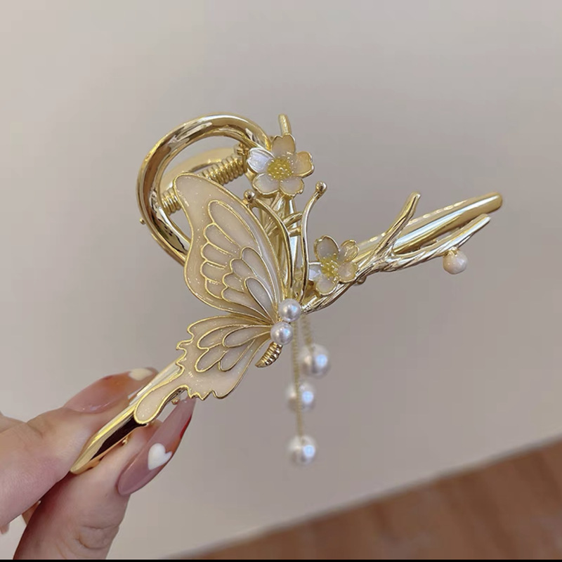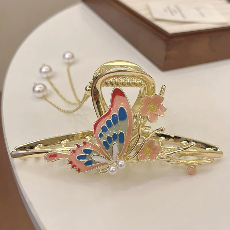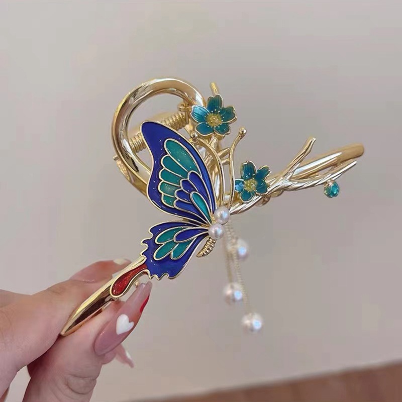 凤尾蝶流苏鲨鱼夹古风发夹头饰古风抓夹合金发抓