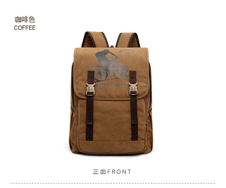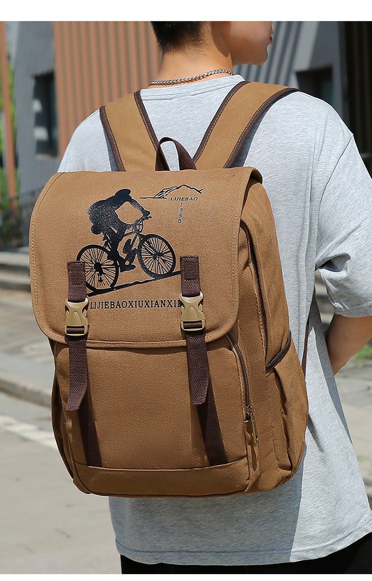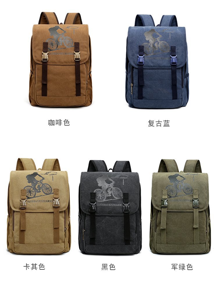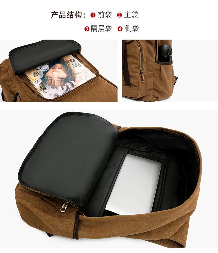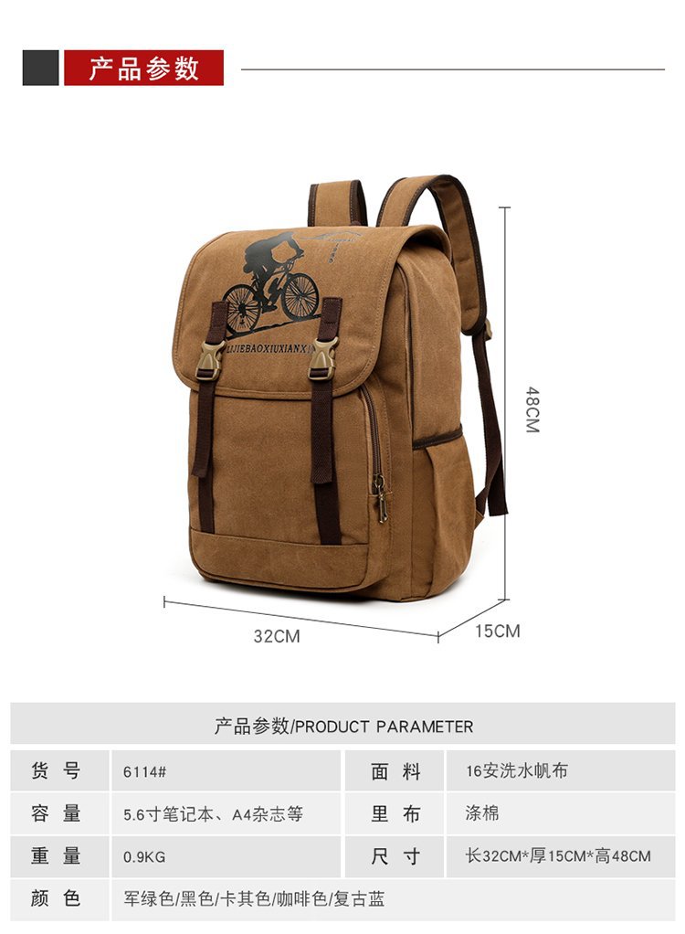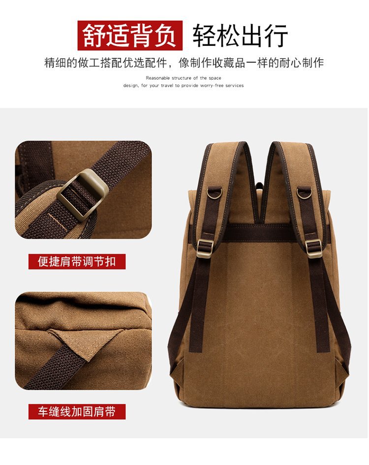 复古男士帆布双肩包初中大学生书包潮流休闲旅行包背包男包