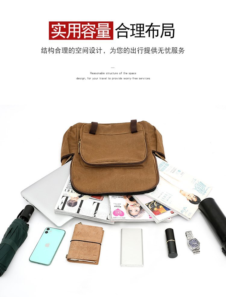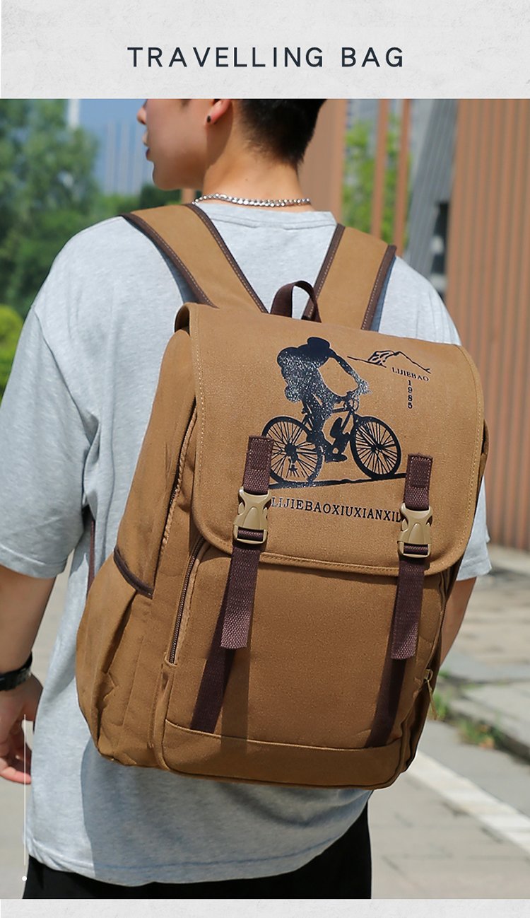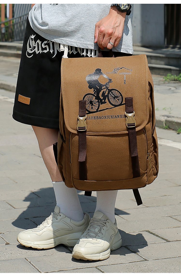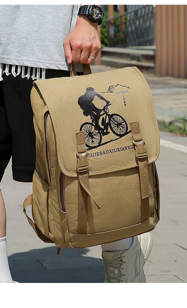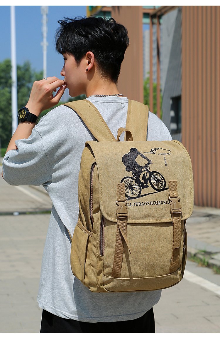 复古男士帆布双肩包初中大学生书包潮流休闲旅行包背包男包