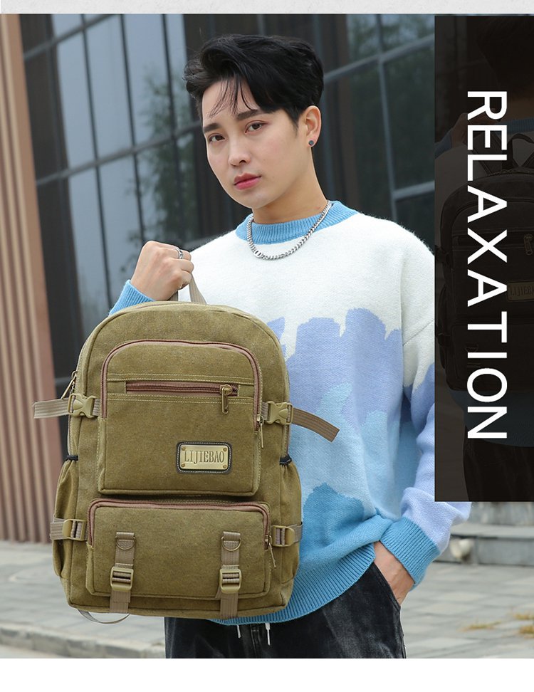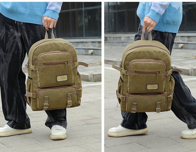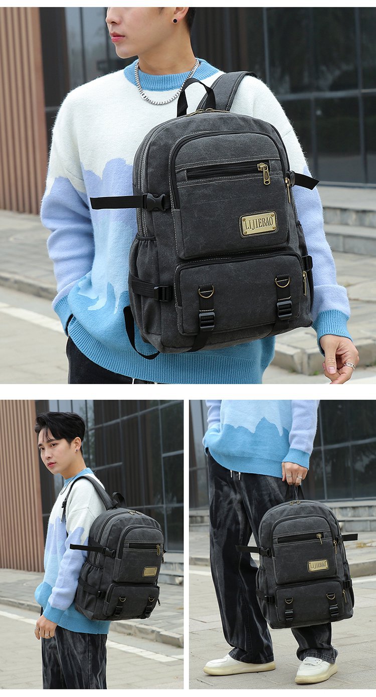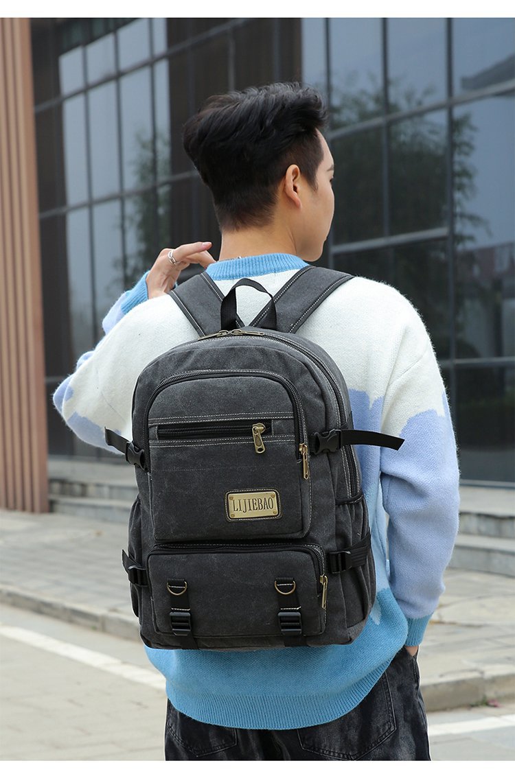 新款跨境男女通用多用途帆布防泼水材质双肩包手提电脑包学生书包