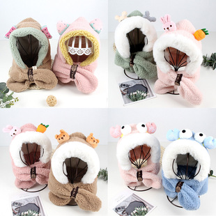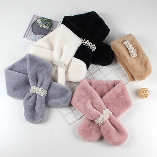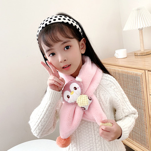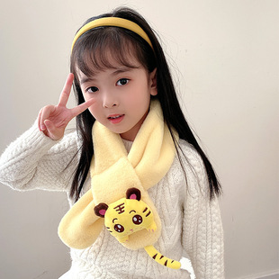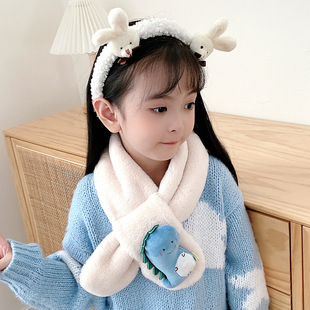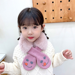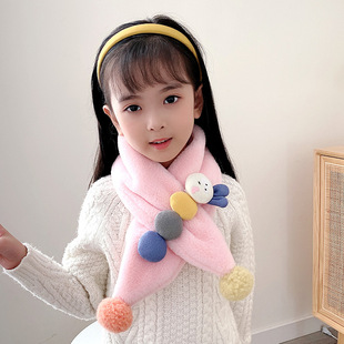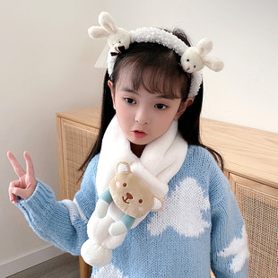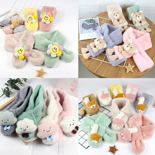 2022新款儿童围巾秋冬款仿兔毛宝宝围脖小孩卡通保暖毛绒围巾批发