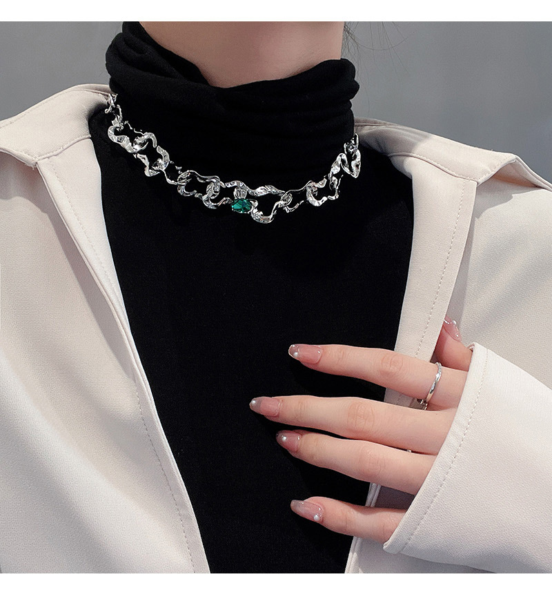 小众猫眼石钛钢缠绕精致满钻项链女ins潮百搭气质网红同款锁骨链