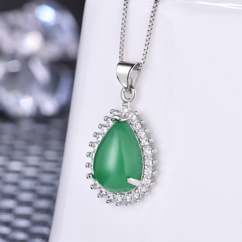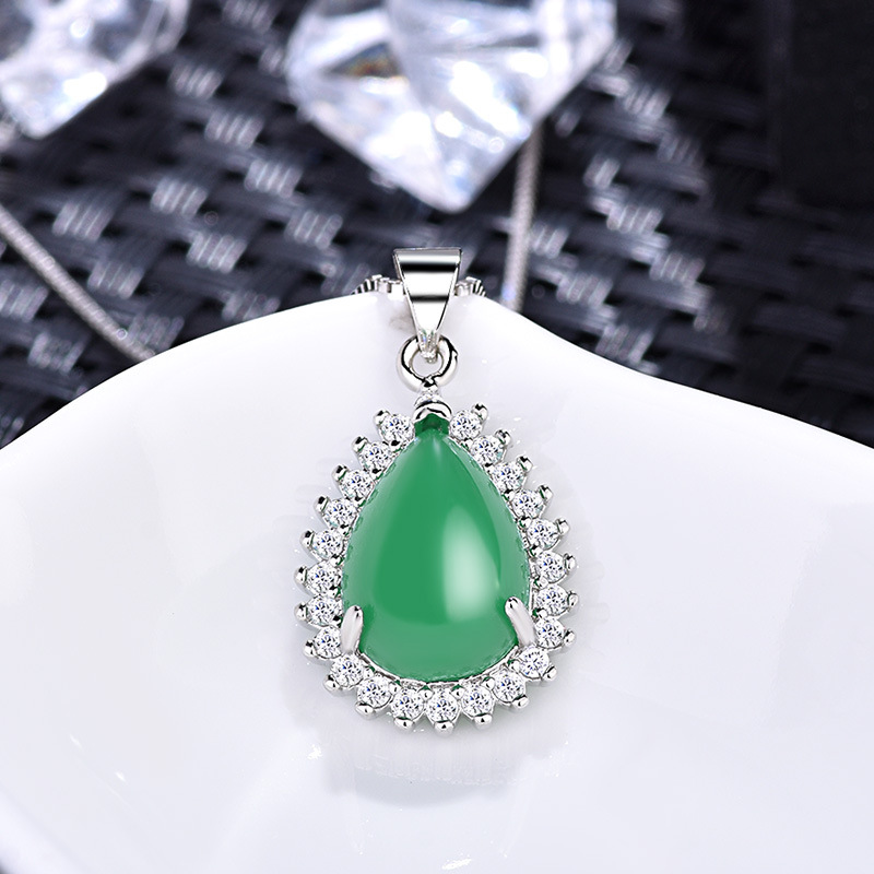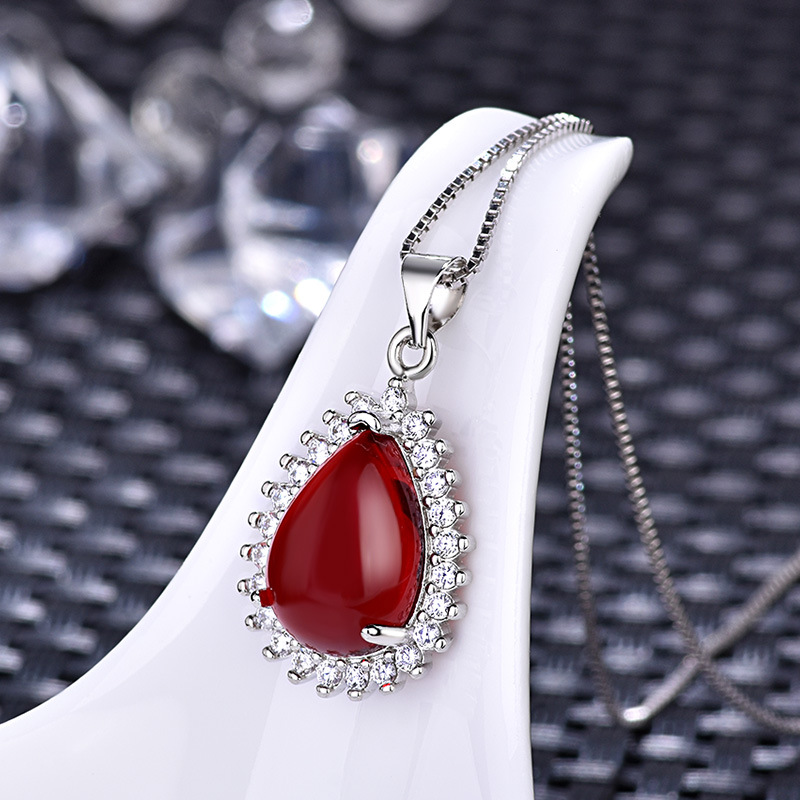 韩版水滴绽放玛瑙吊坠绿玉髓时尚项链红宝石女项坠玉石 一件批发