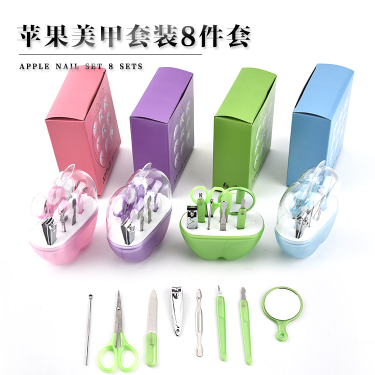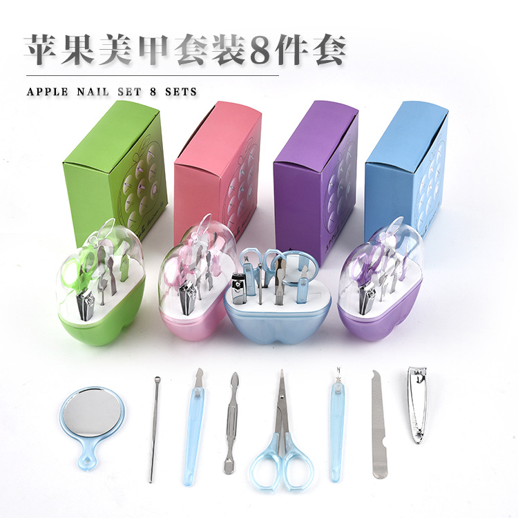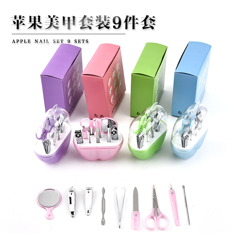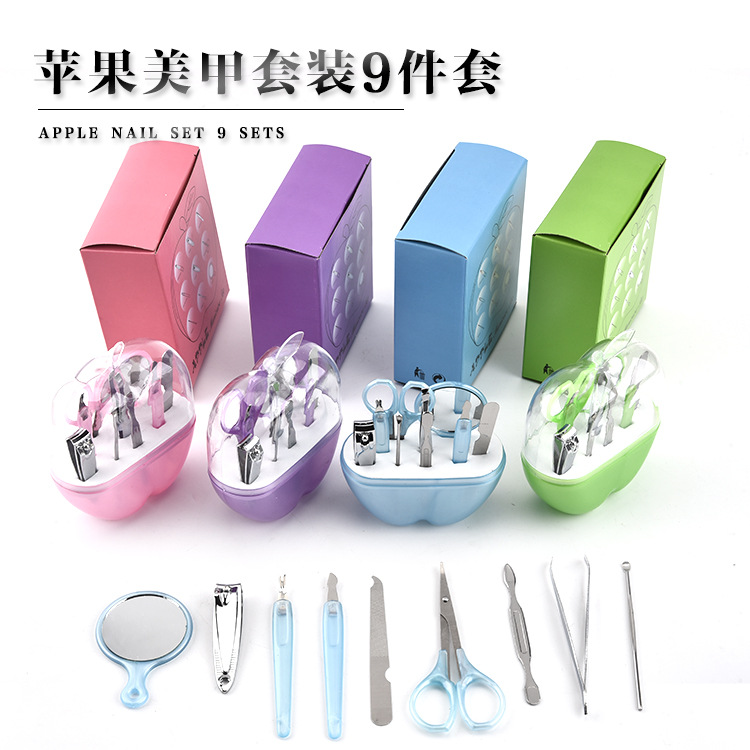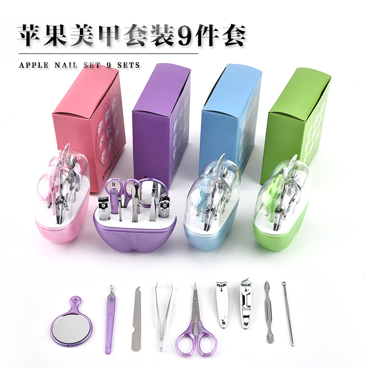 apple 9 pieces nail clippers scissors set beauty pedicure baby treasure stainless steel scissors nail tools color box packaging