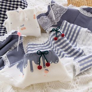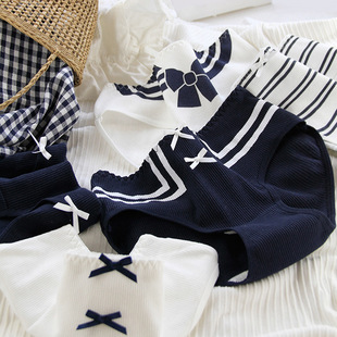 白蕾丝边黑色简约蝴蝶结少女内裤 柔软透气棉裆女士内裤 0123