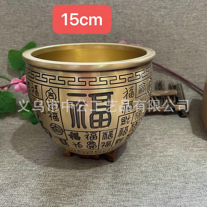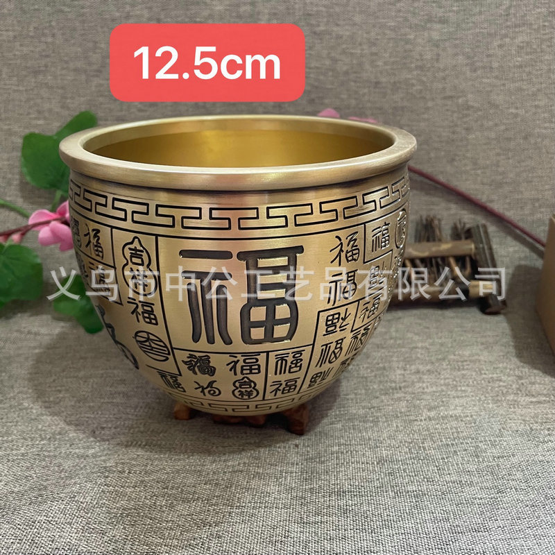 黄铜纯铜百福缸 桌面摆件纳福聚宝盆工艺摆件家用铜工艺品