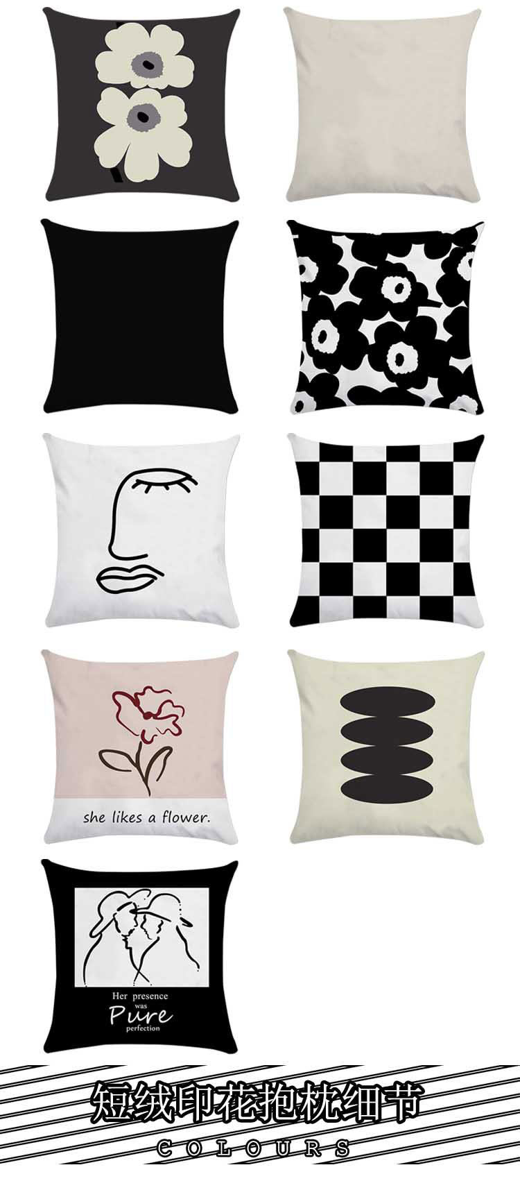 北欧ins风几何靠枕抽象线条人脸沙发靠背轻奢黑白棋盘格抱枕套