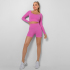 欧美潮流新款无缝针织低领瑜伽长袖 紧身高腰运动健身短裤套装女