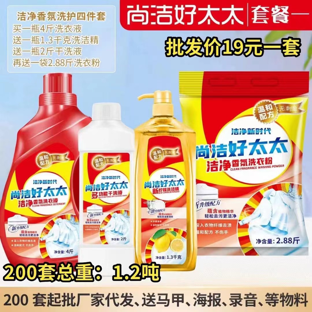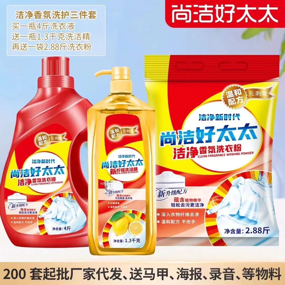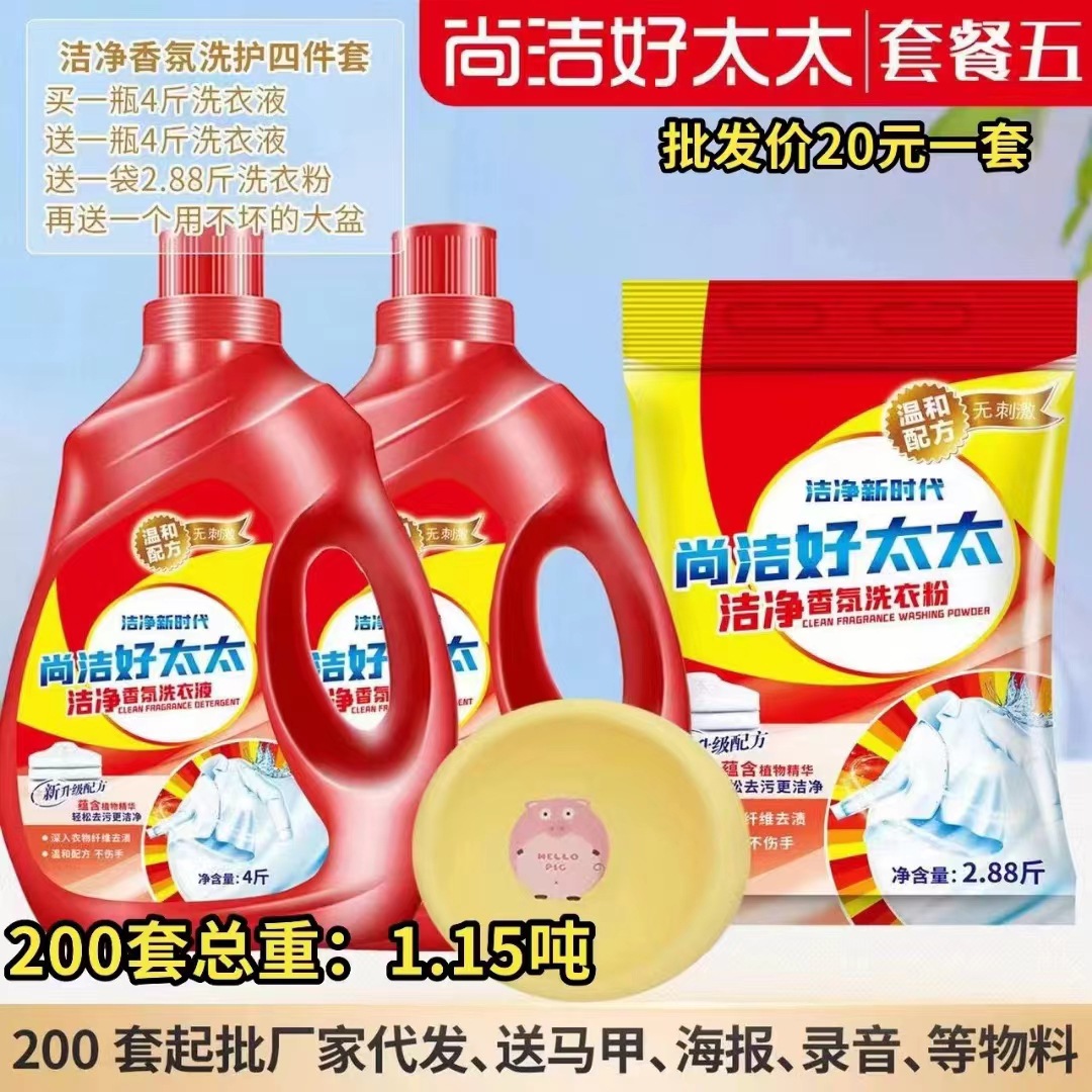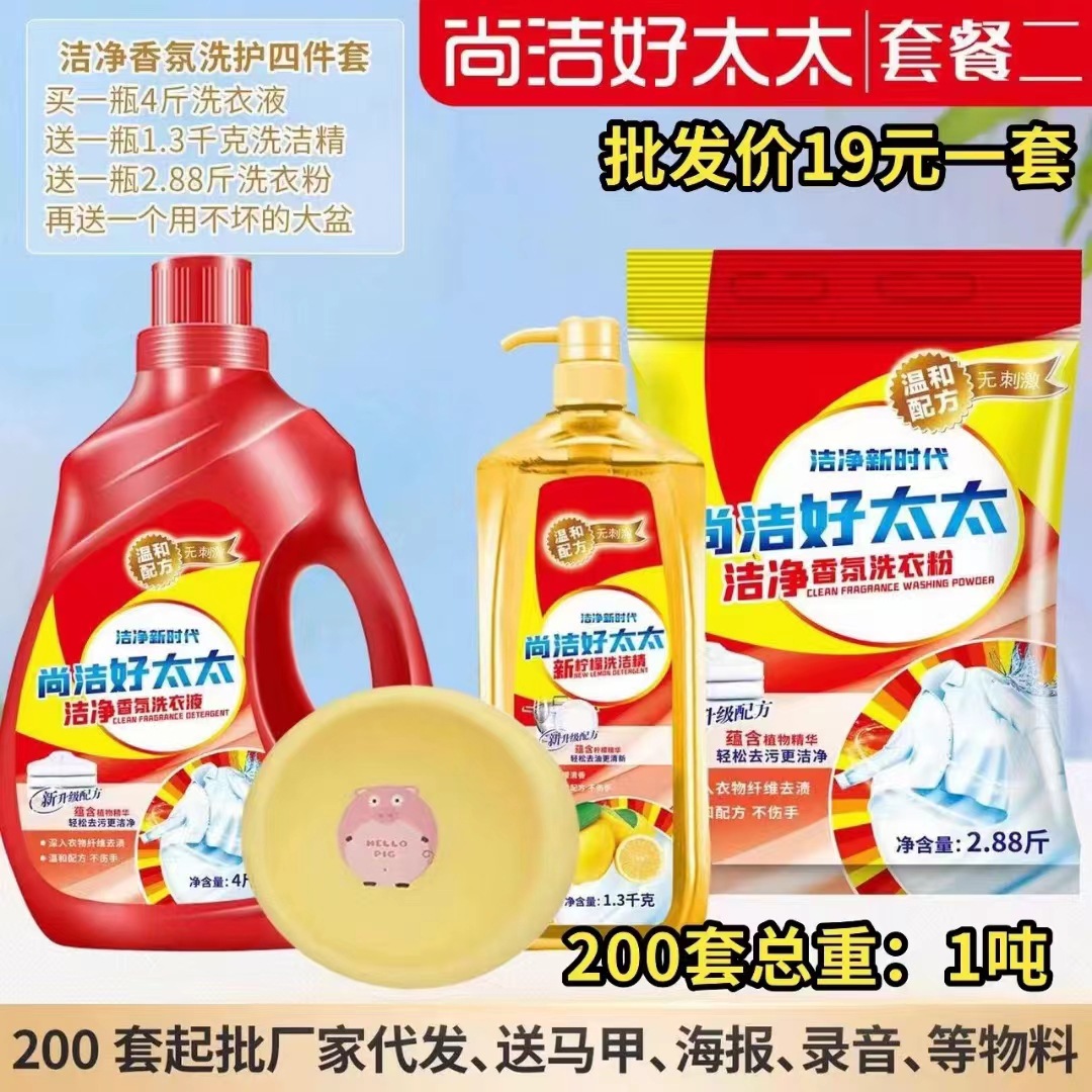 尚洁好太太日化五件套洗衣液洗衣粉盆4件套地摊纸巾牙膏货源工厂