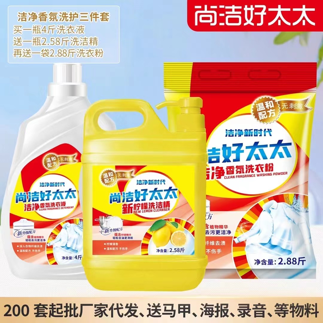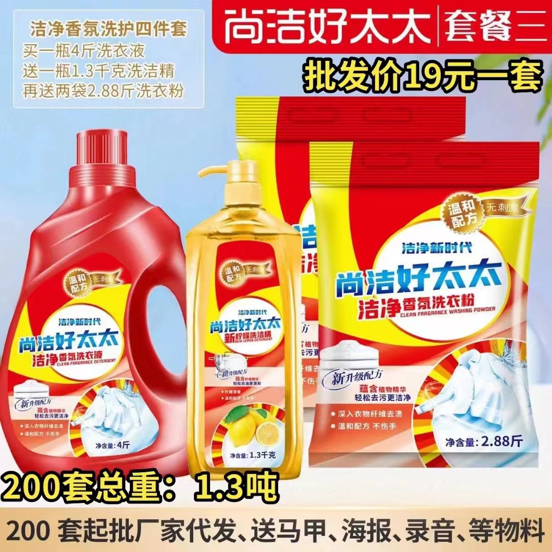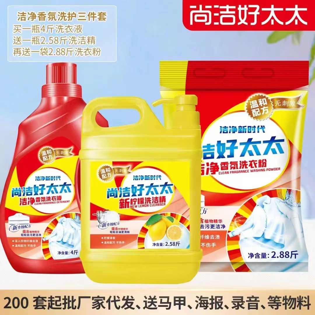 尚洁好太太日化五件套洗衣液洗衣粉盆4件套地摊纸巾牙膏货源工厂