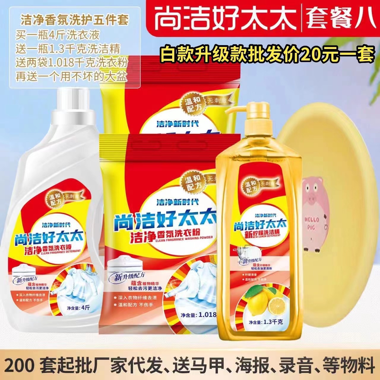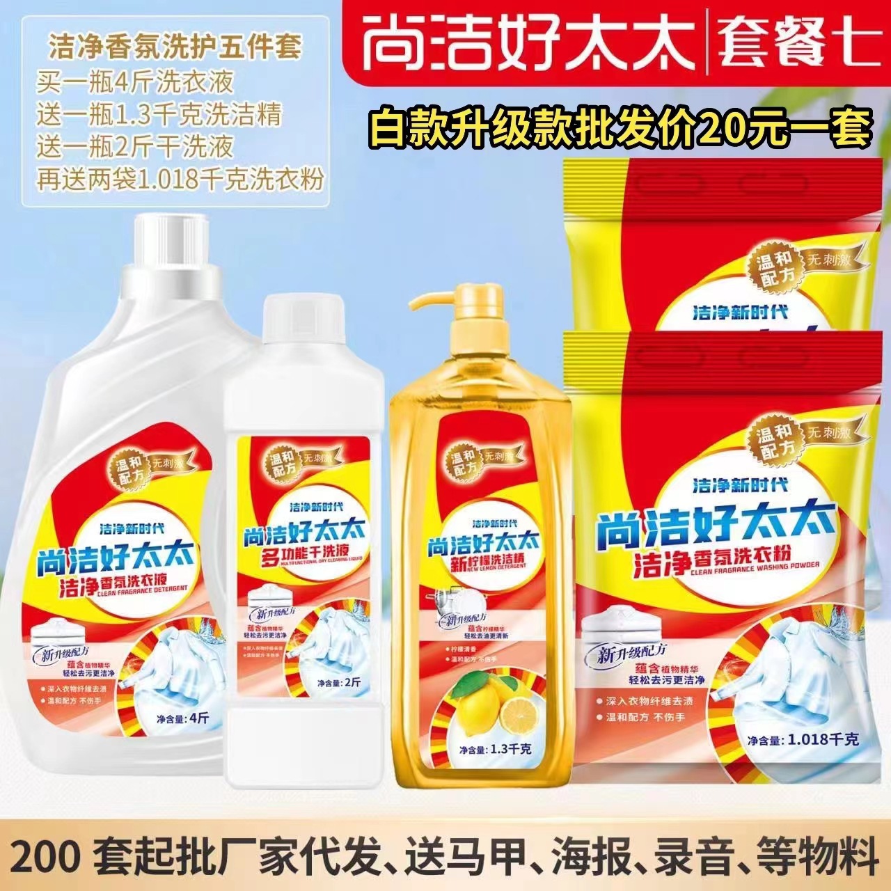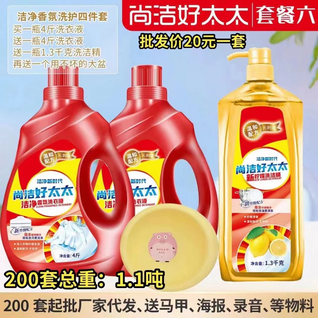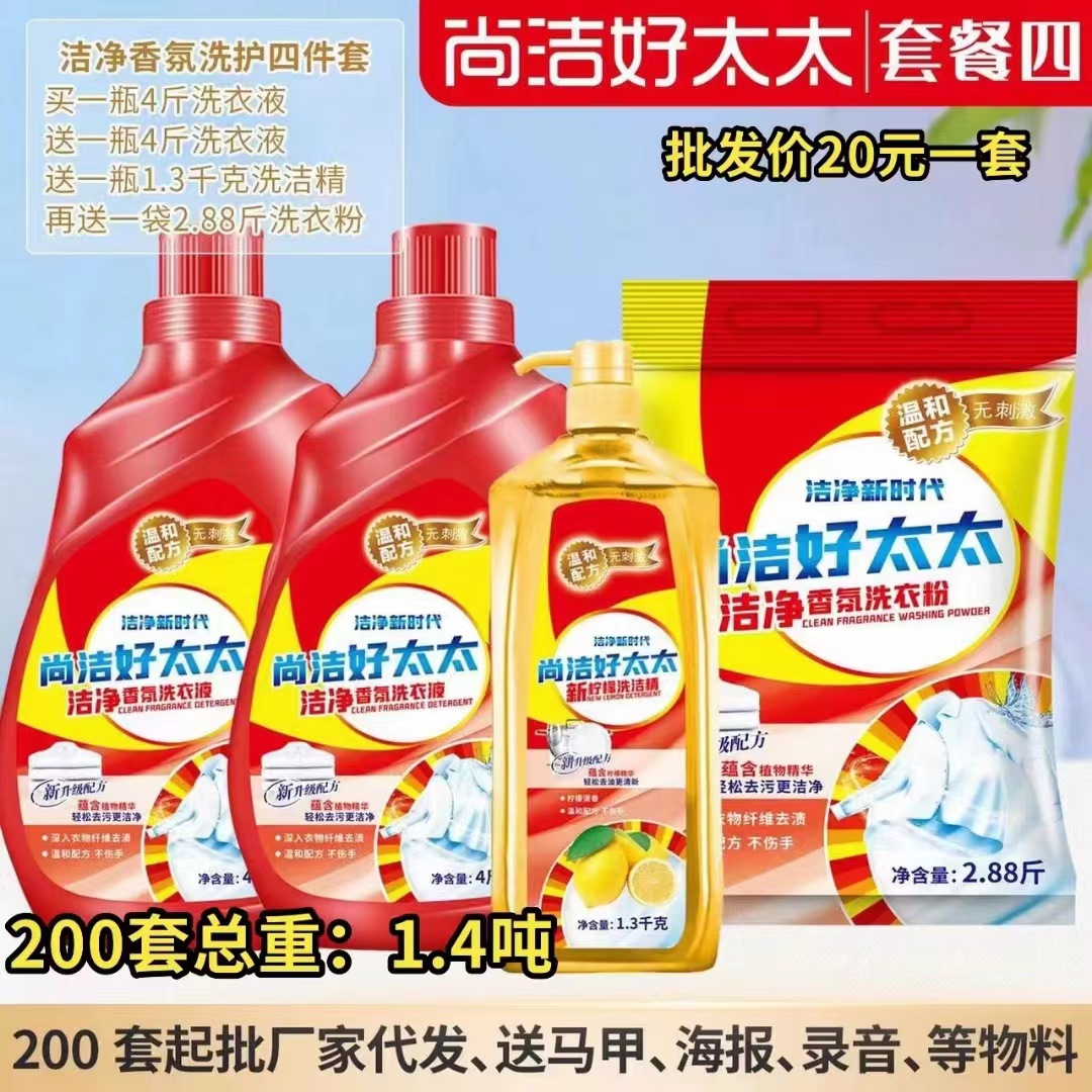 尚洁好太太日化五件套洗衣液洗衣粉盆4件套地摊纸巾牙膏货源工厂