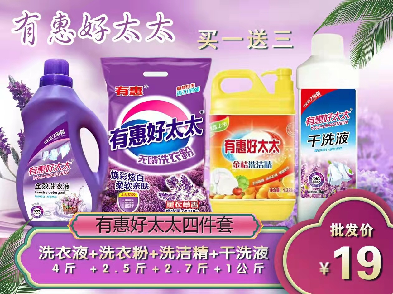 有惠好太太日化四件套洗衣液全能日化4件套地摊货源工厂直供批发