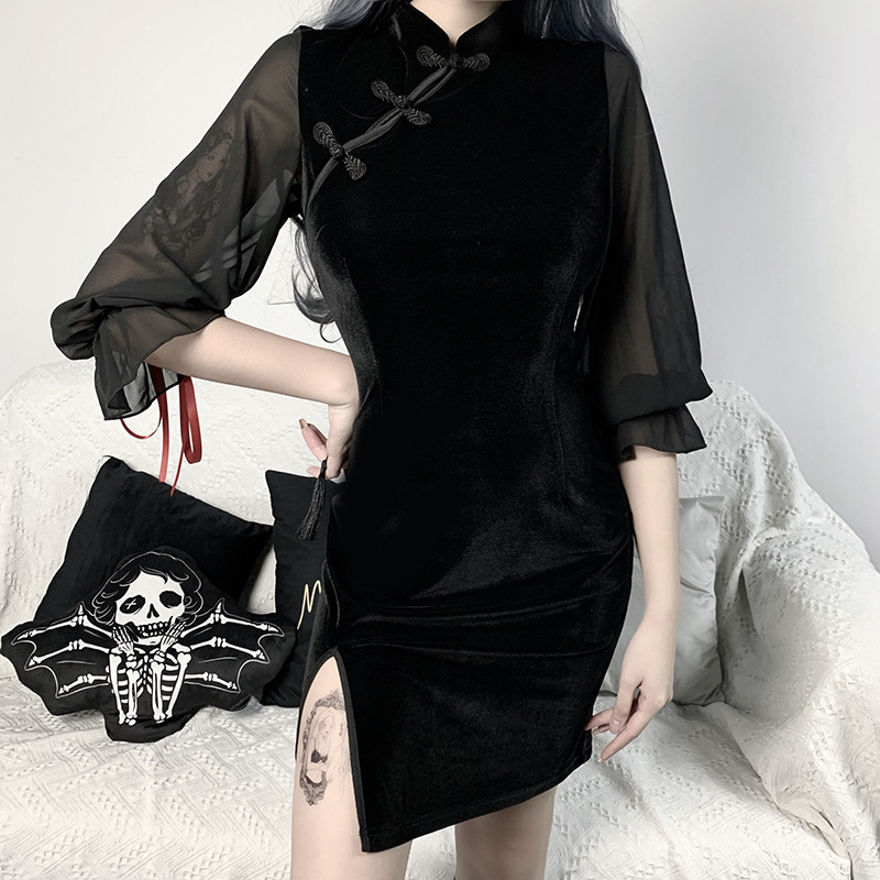 2022新款修身高腰旗袍连衣裙改良版夏季短裙古着复古裙女装短裙女