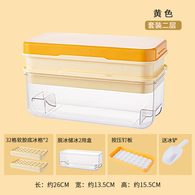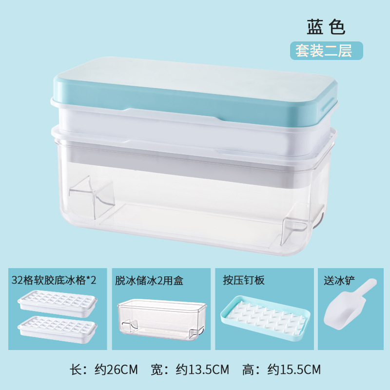 按压冰格冻冰块模具家用储冰制冰盒大冰块盒硅胶带盖冰盒制冰器