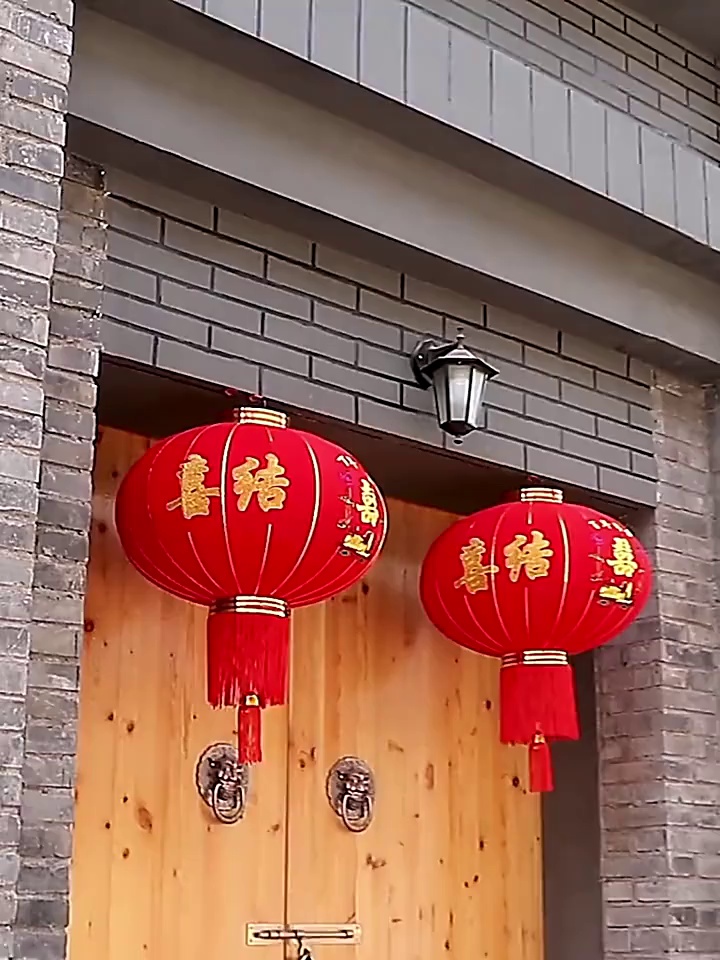 春节过年大红植绒灯笼绒布喜庆装饰户外乔迁大门对春联福字中国结