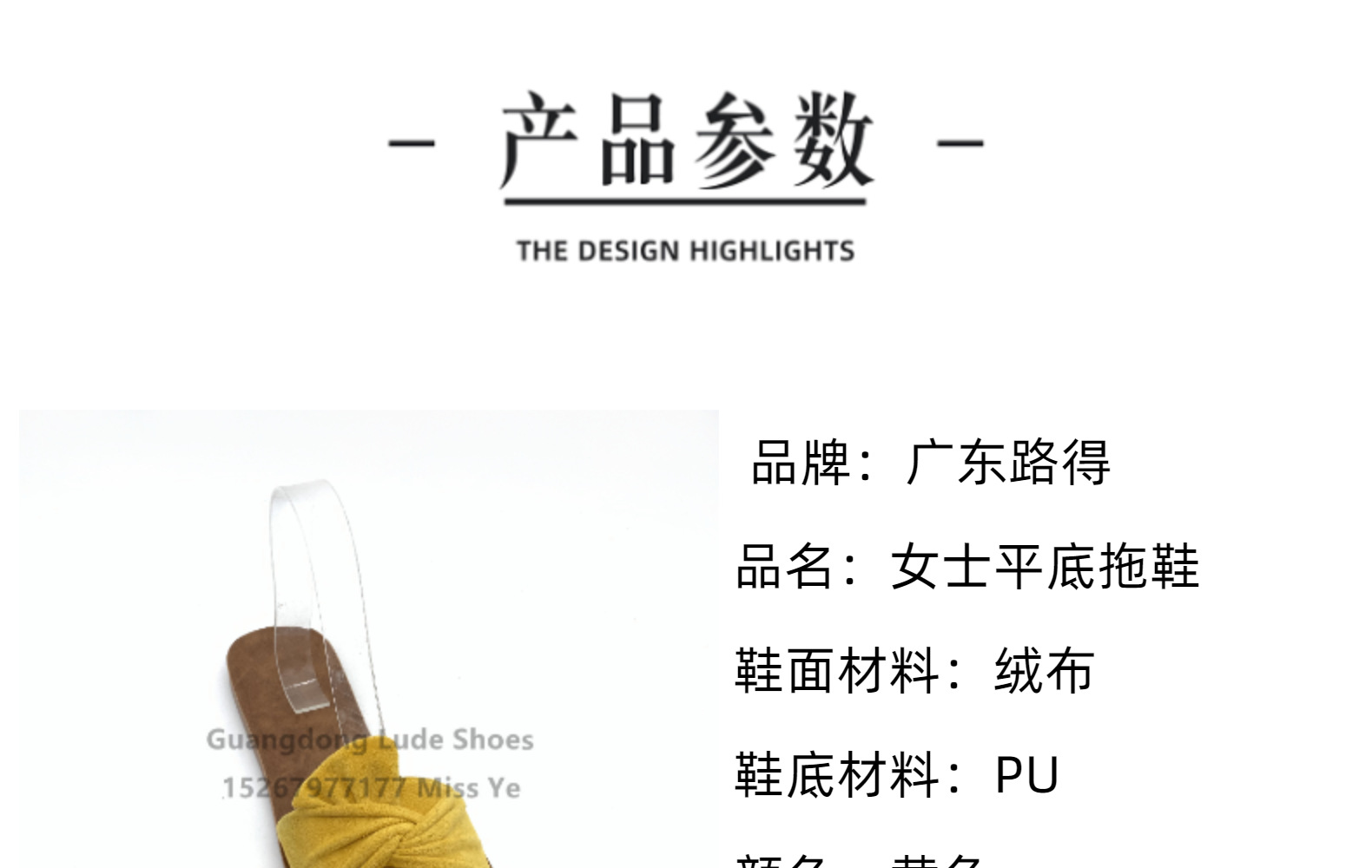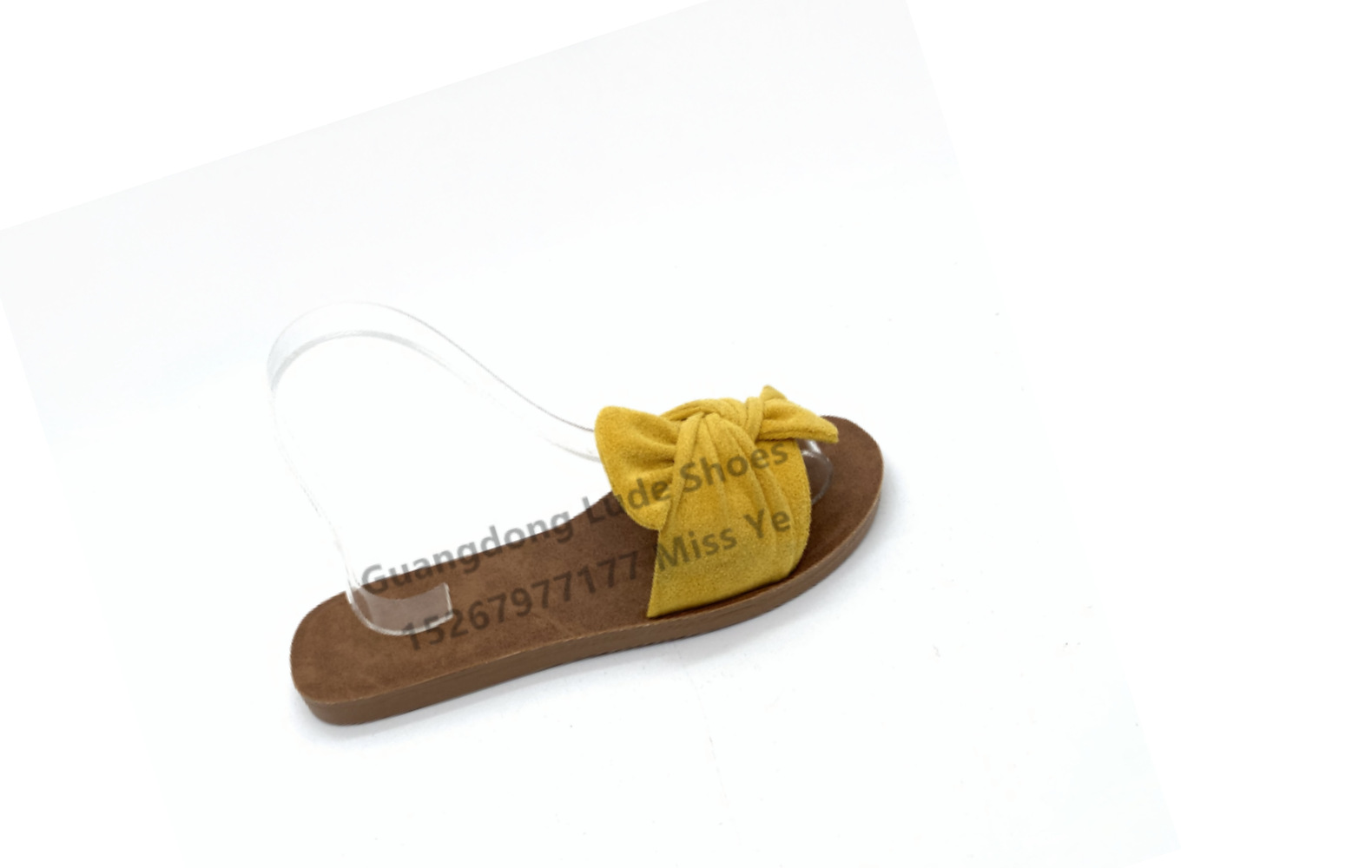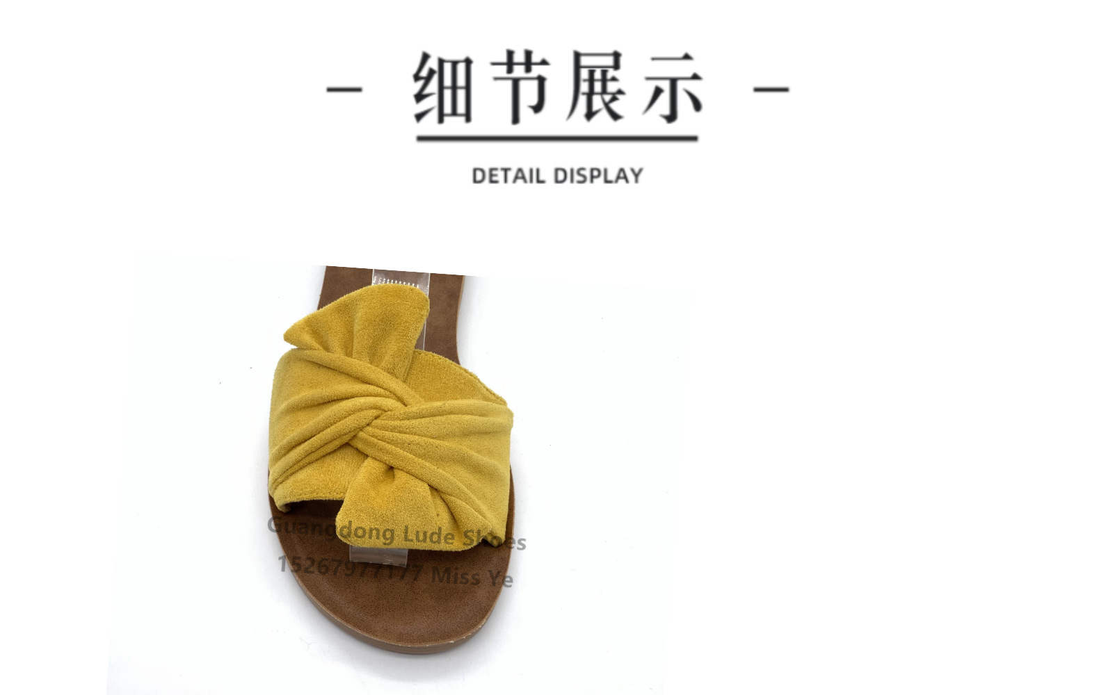 女士平底拖鞋夏季新款外穿凉拖女绒布扭结蝴蝶结广州女鞋工艺鞋