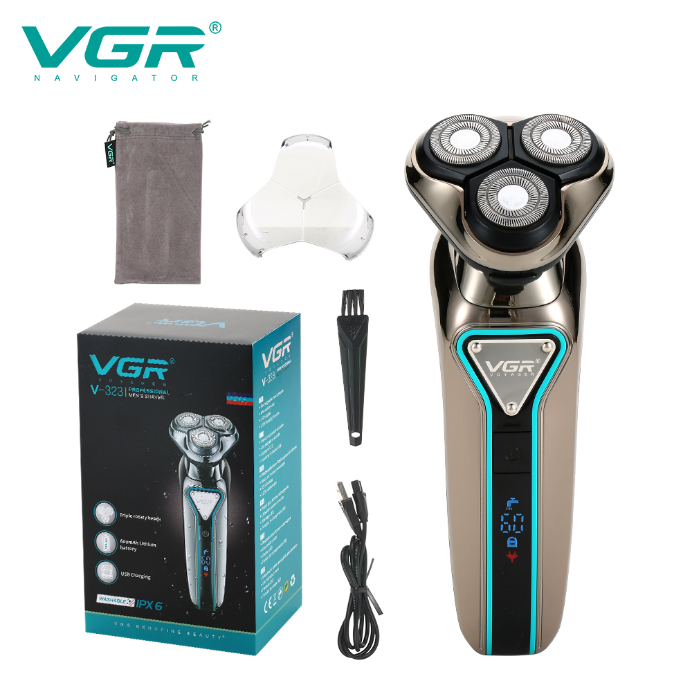 VGR跨境电动剃须刀水洗男士专用剃须旋转式三刀头数显剃须刀V-323