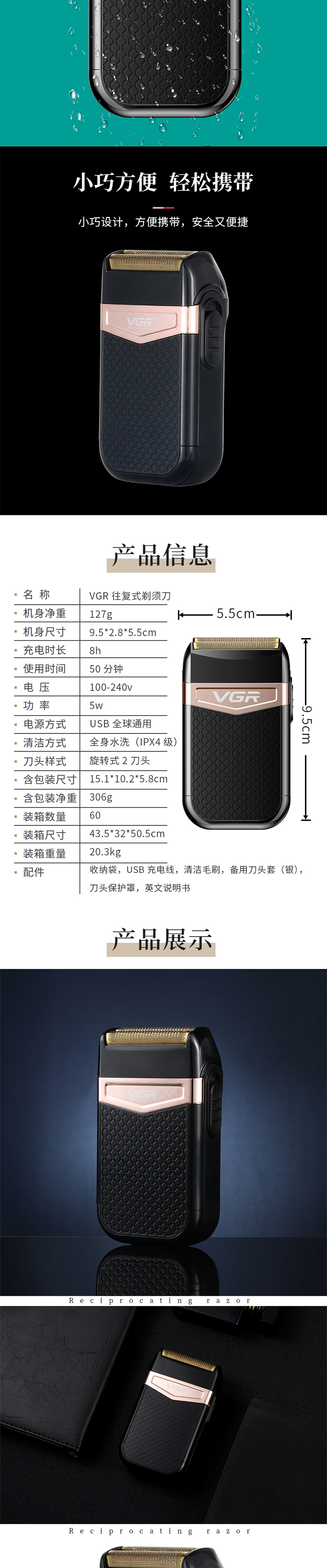 VGR331便携剃须刀全身水洗增白器男士刮胡刀带替换刀头电动剃须刀