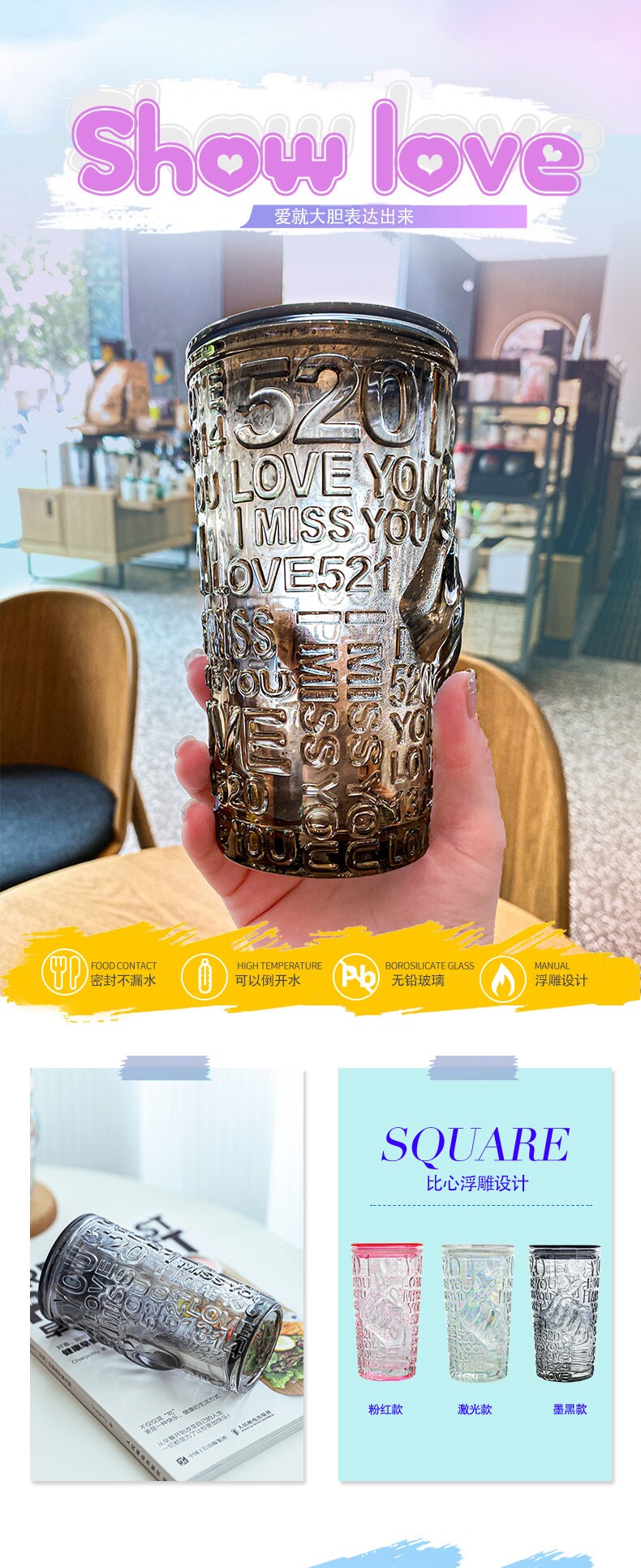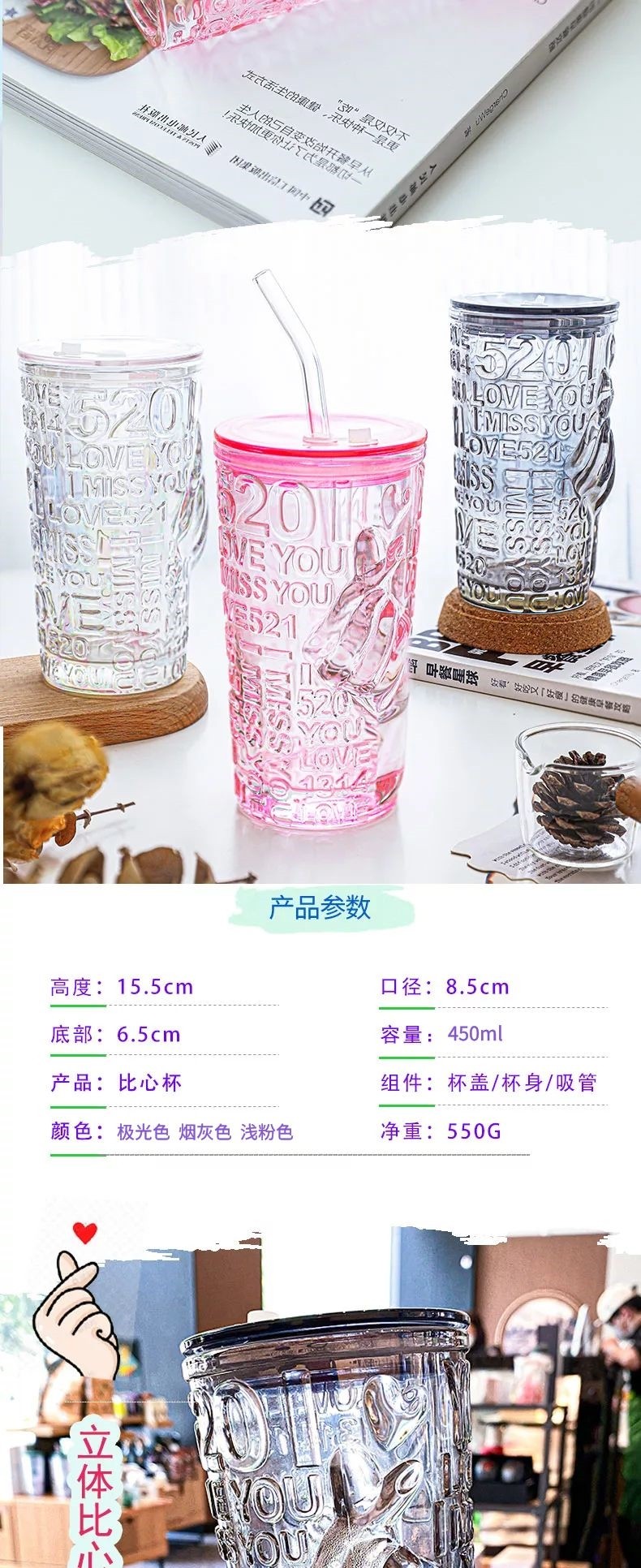 比心杯玻璃吸管杯情侣水杯牛奶杯高