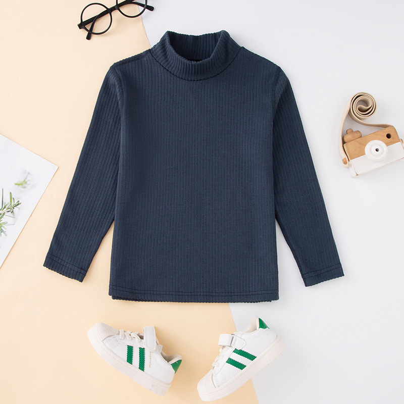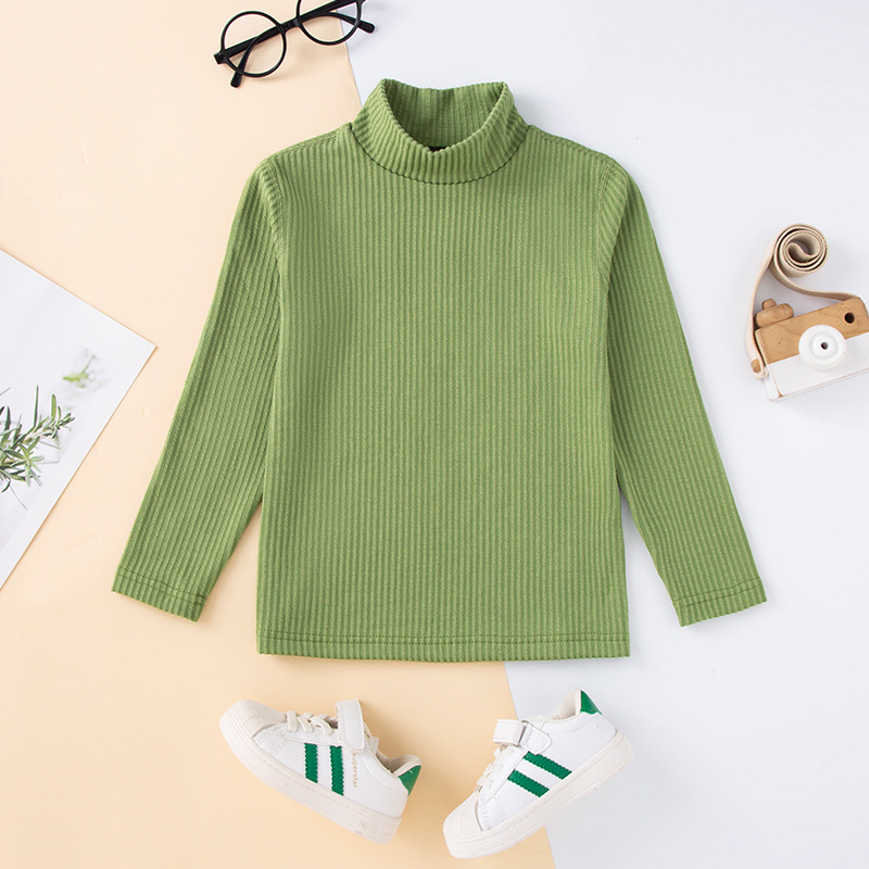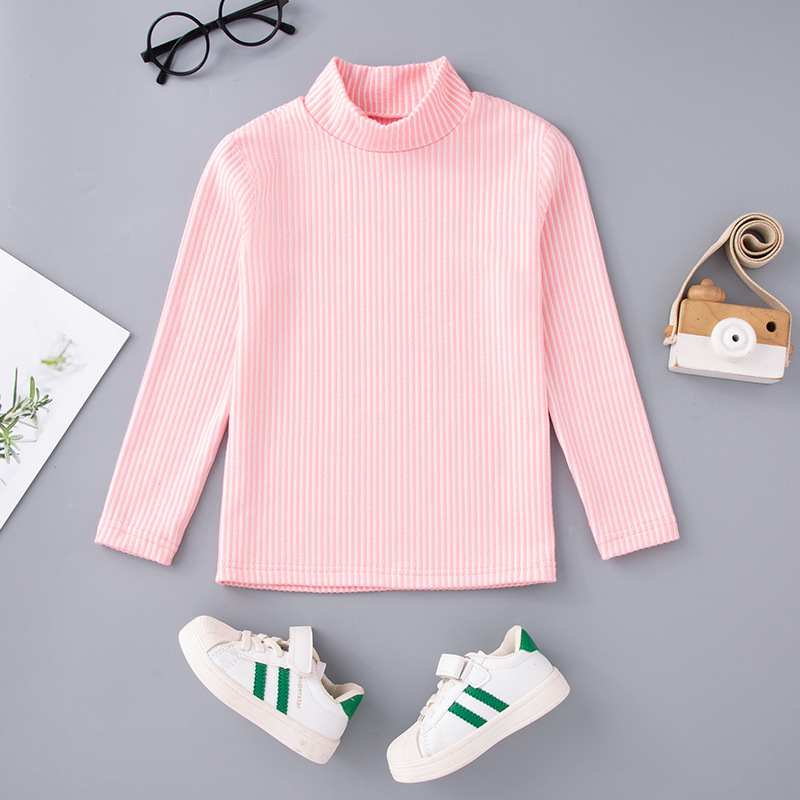22新款儿童坑条打底衫半高领男童秋季女童长袖春秋打底衣春秋款