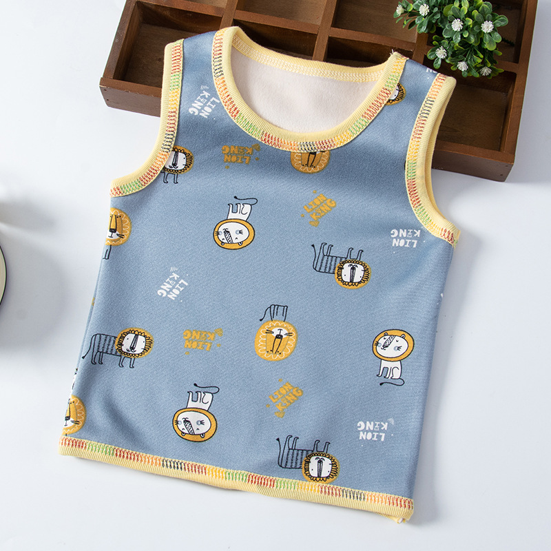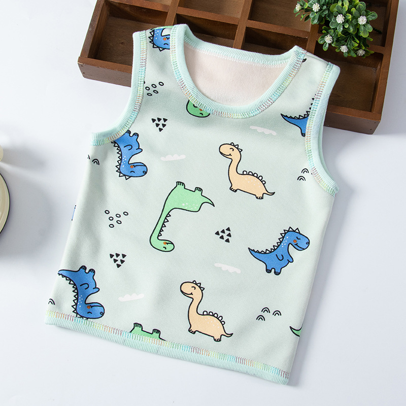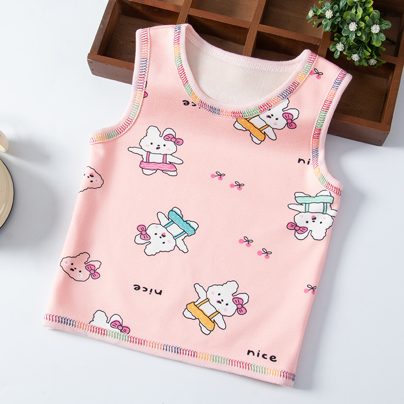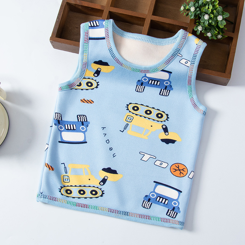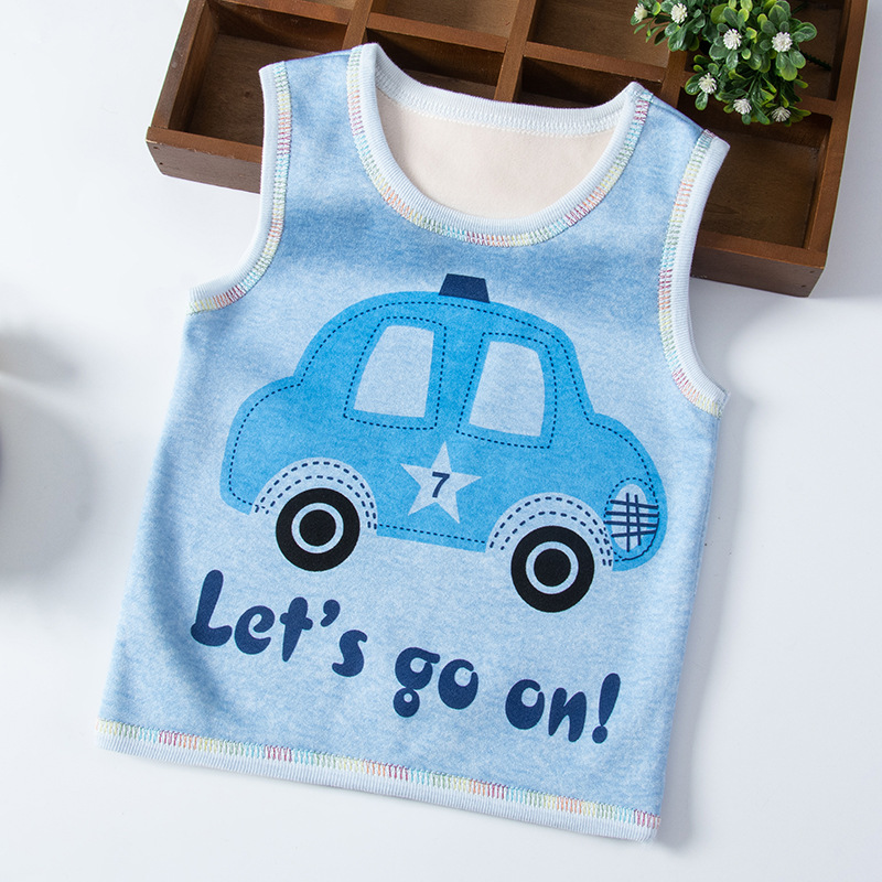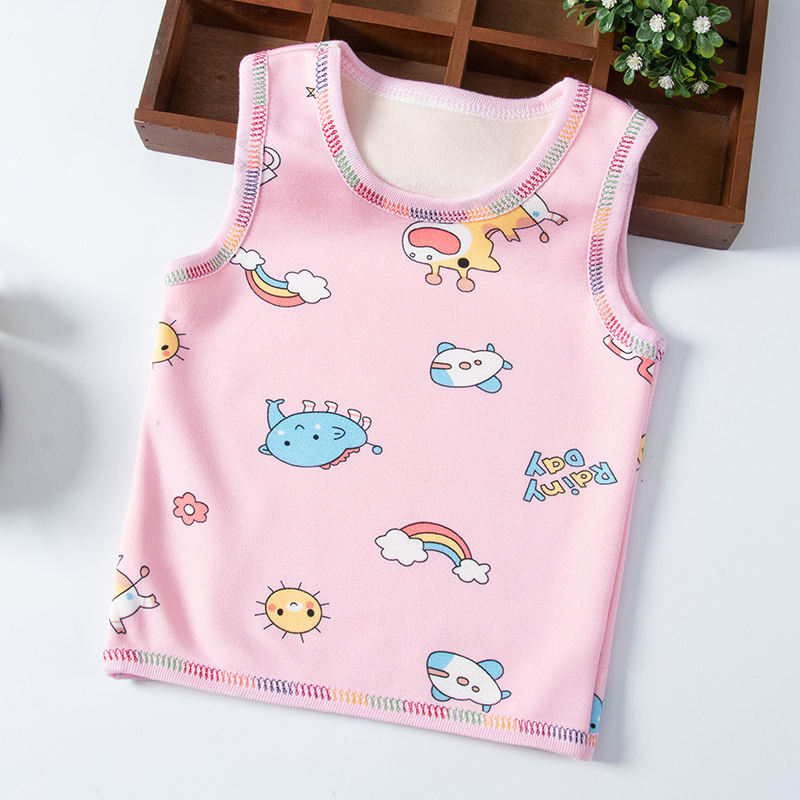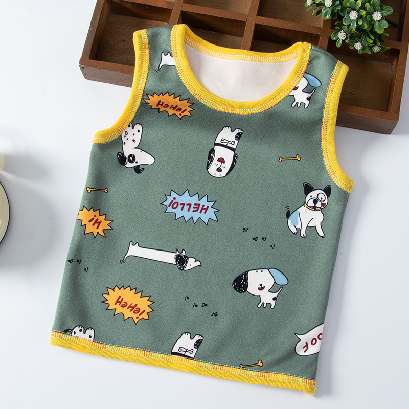 儿童保暖背心加绒加厚男女童宝宝坎肩中小童卡通打底马甲一件代发