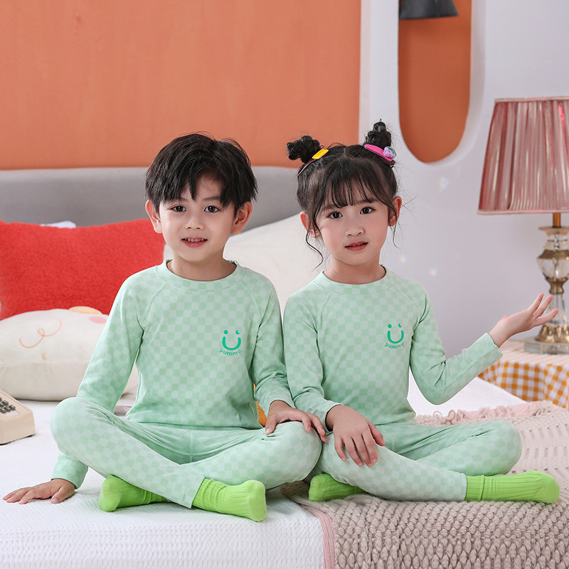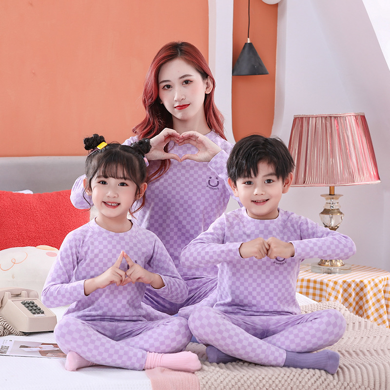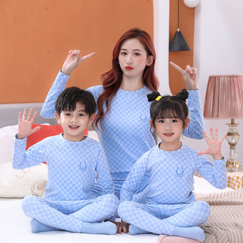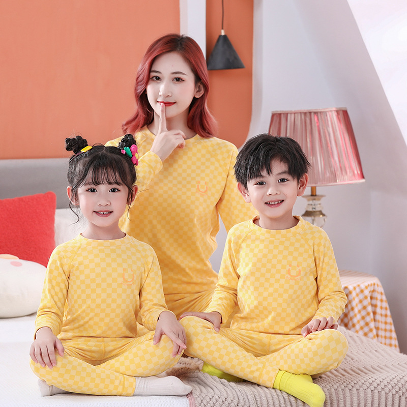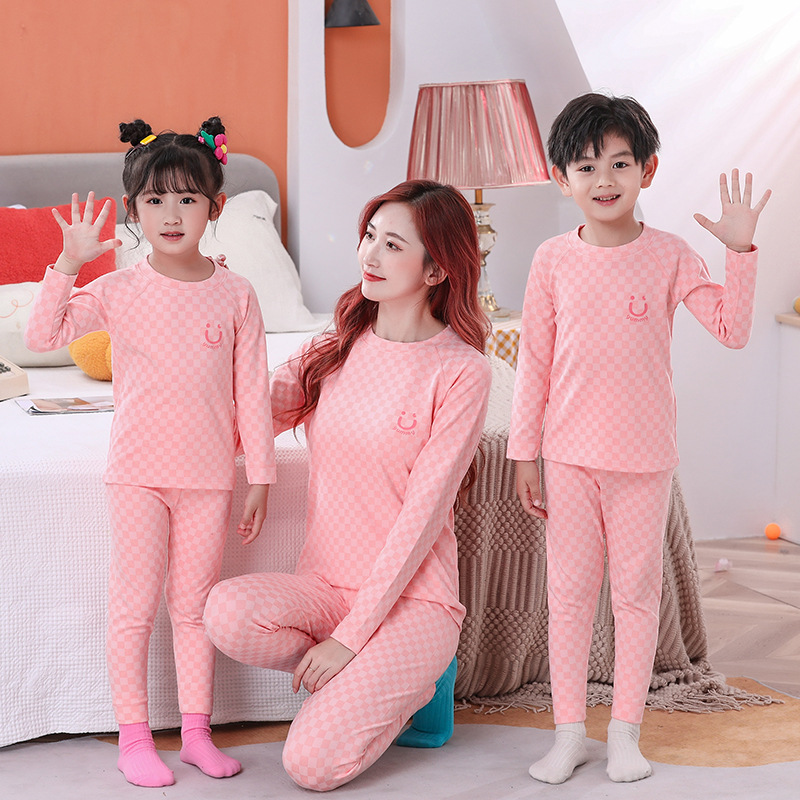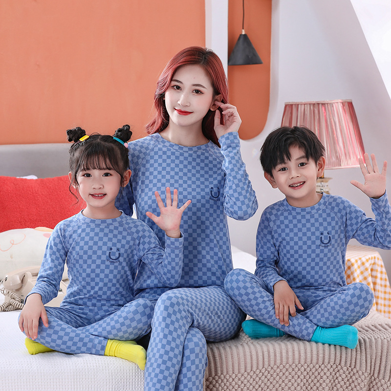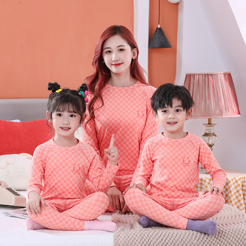 儿童秋衣秋裤秋冬德芙格亲子家居服套装男女童棋盘格保暖内衣
