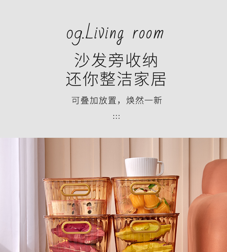 34*25*10轻奢PET收纳盒大容量 透明带盖防尘杂物收纳箱