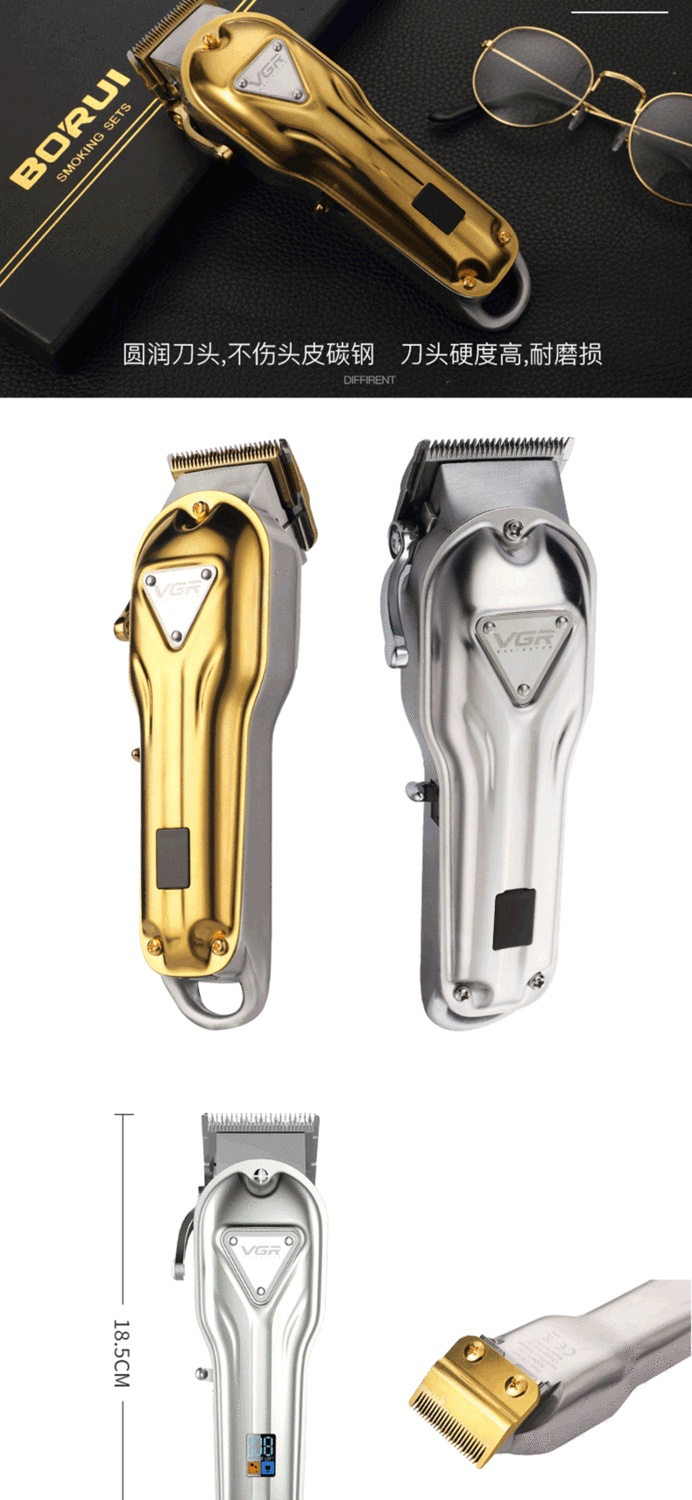 VGR134金属电推剪充电式跨境理发器大功率带液晶油头推子外理发剪